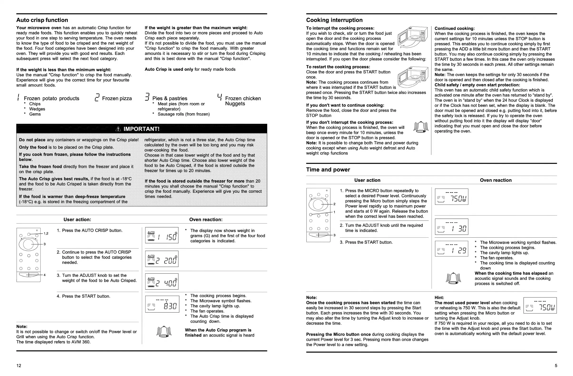 Whirlpool AVM 230 - Cooking Interruption; Time and Power