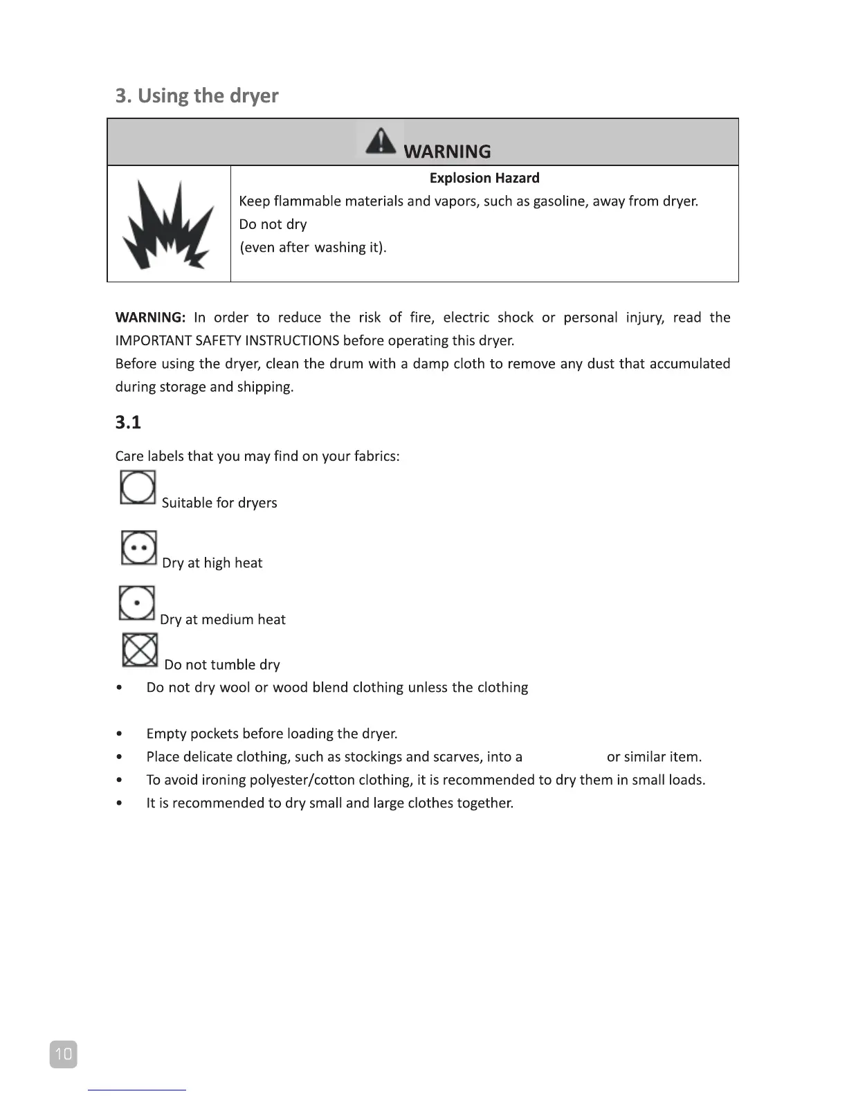 Whirlpool AWD712S - Using the Dryer