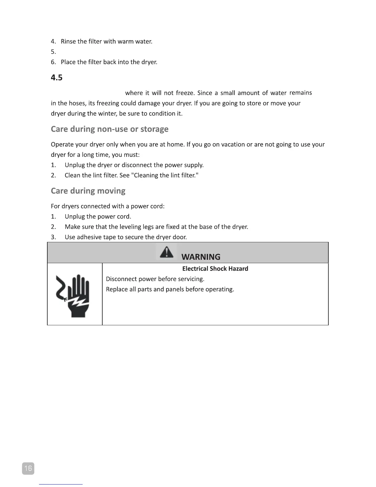 Whirlpool AWD712S - Care During Vacation or Moving