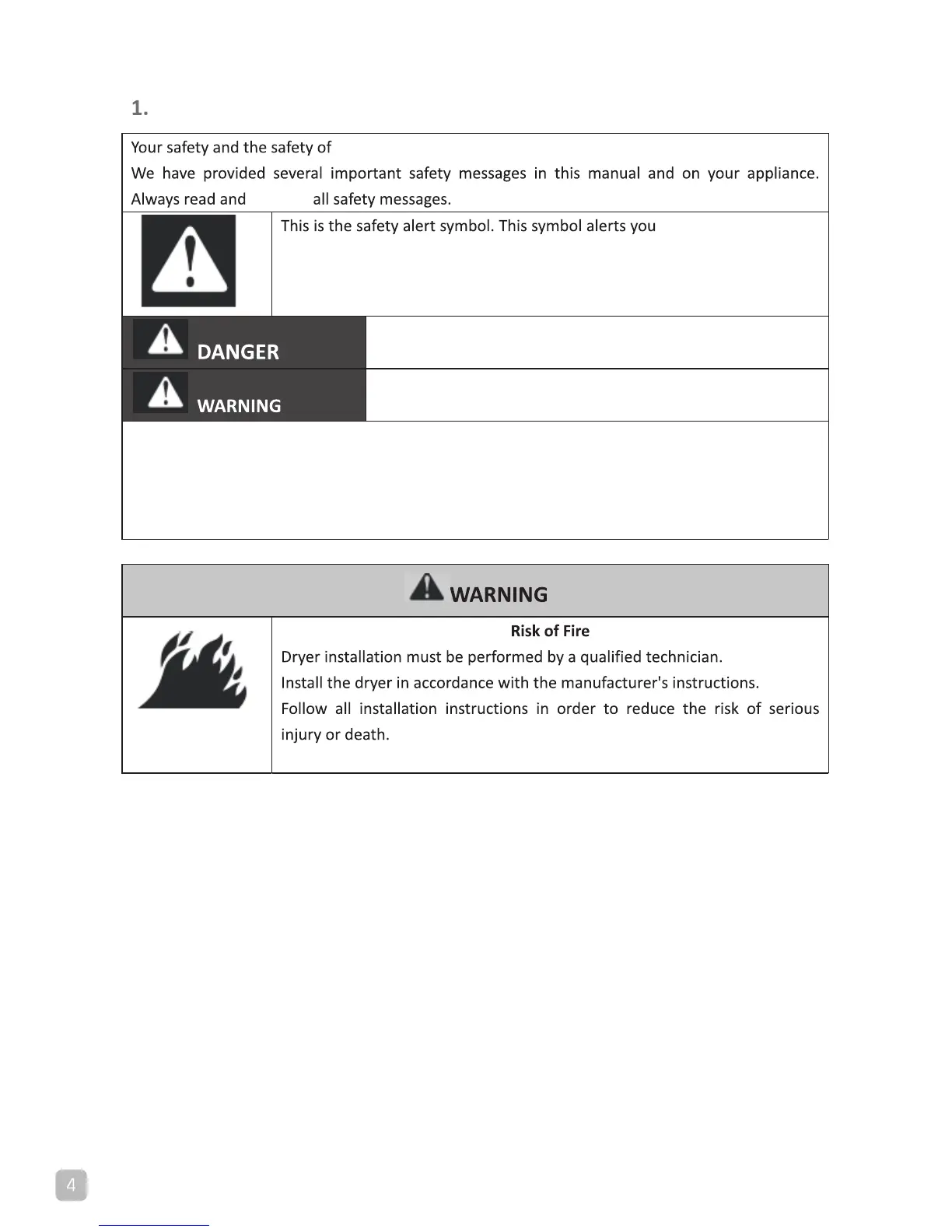 alert symbol or the word DANGER or WARNING. These words mean: