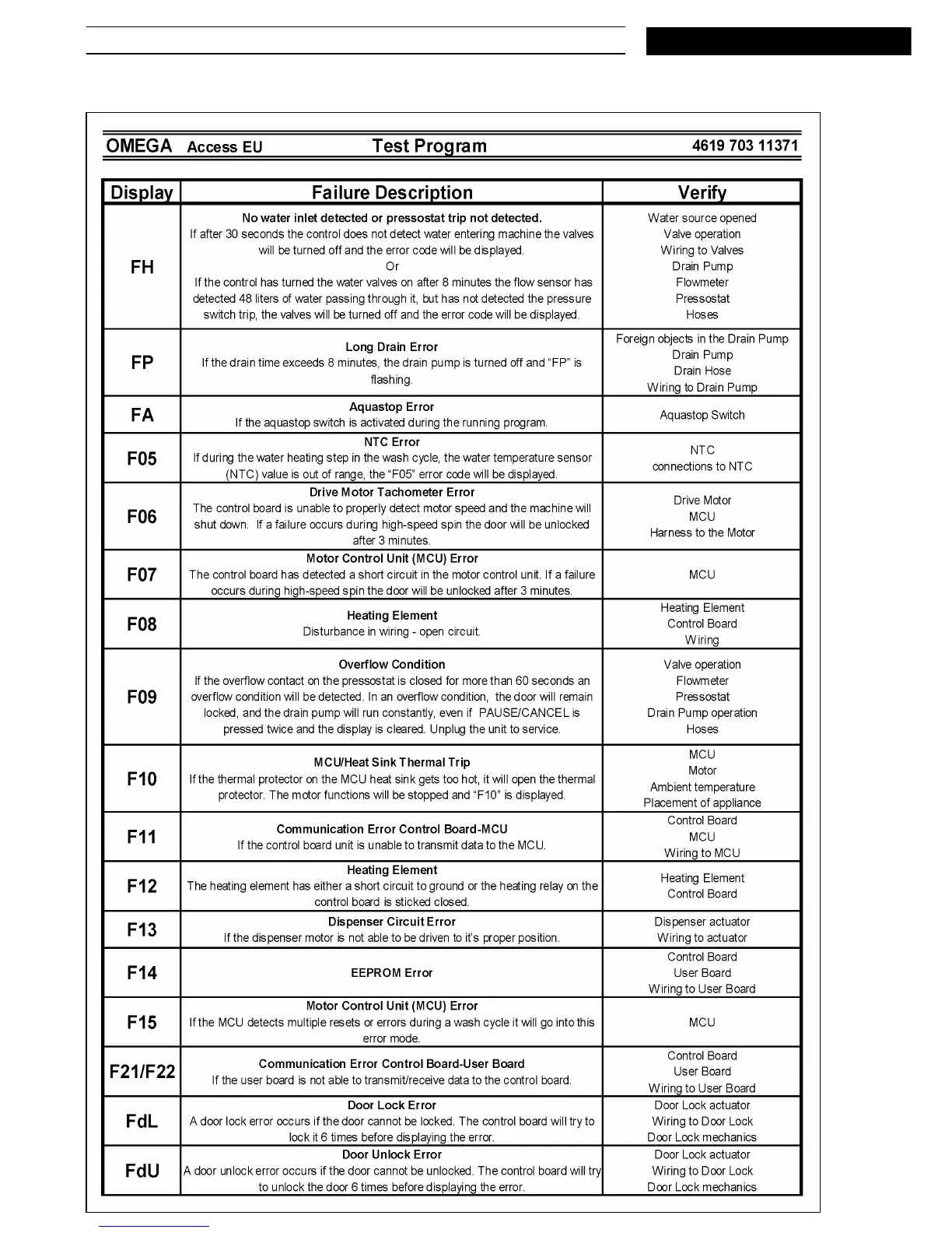 Whirlpool AWM 8000-E - Error Code Troubleshooting