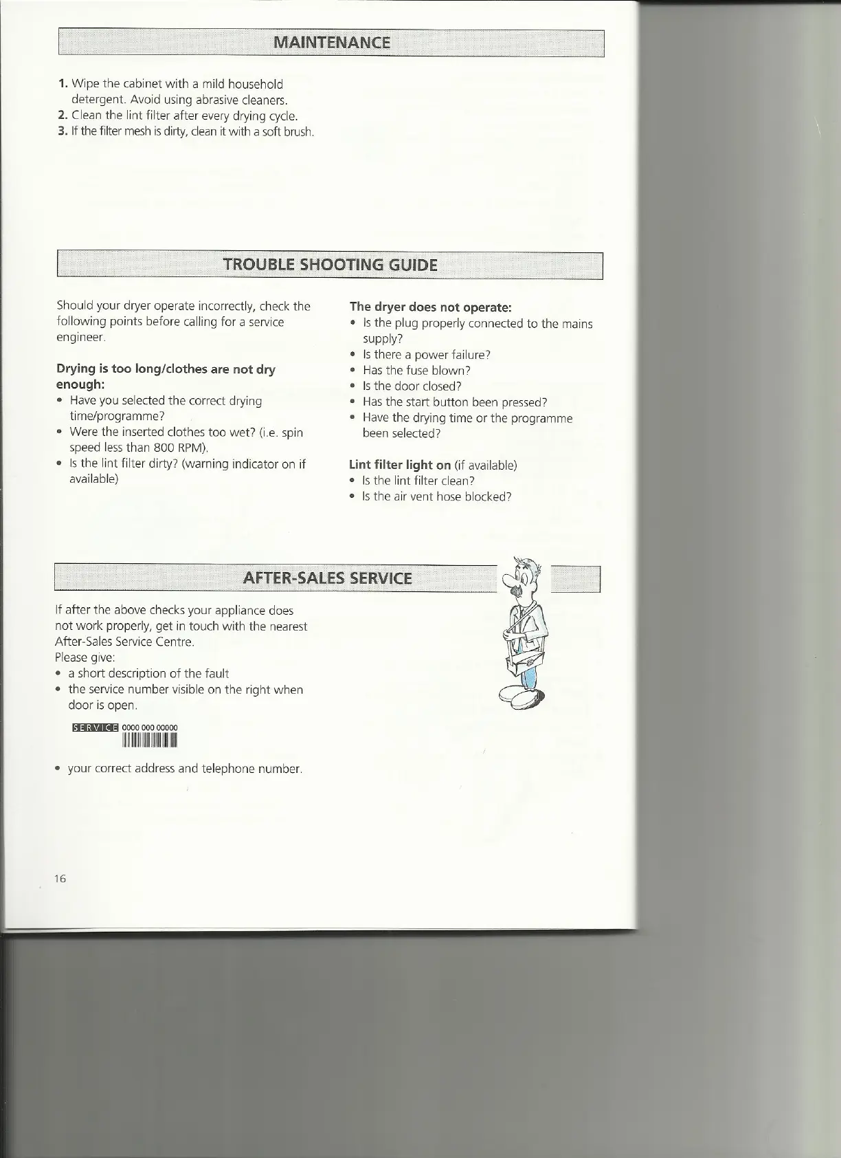 Whirlpool AWZ121 - Maintenance and Troubleshooting; Routine Maintenance; Troubleshooting Dryer Issues; Lint Filter Indicator Troubleshooting