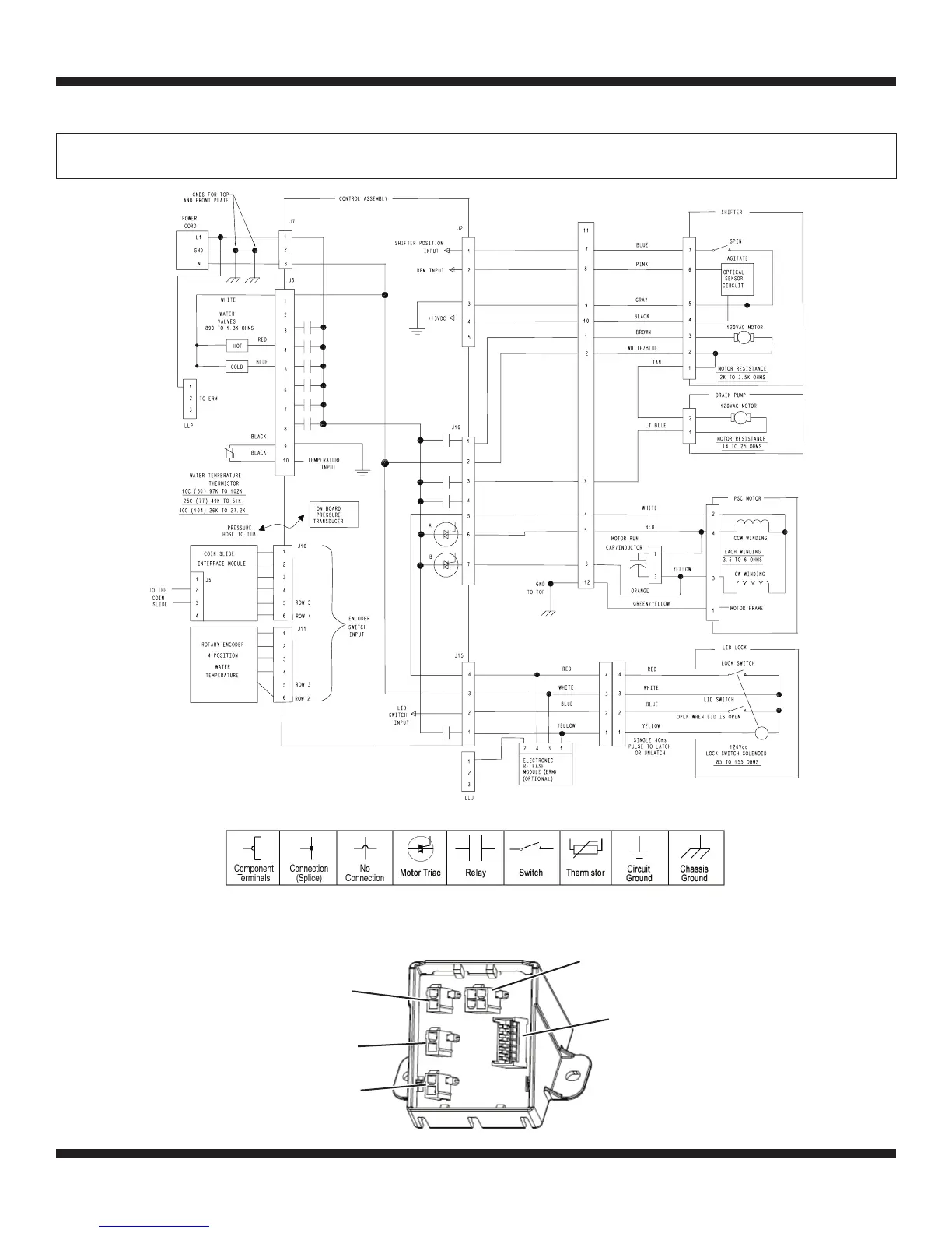 NOTE: Schematic shows shifter in SPIN position, lock switch open, and motor off.