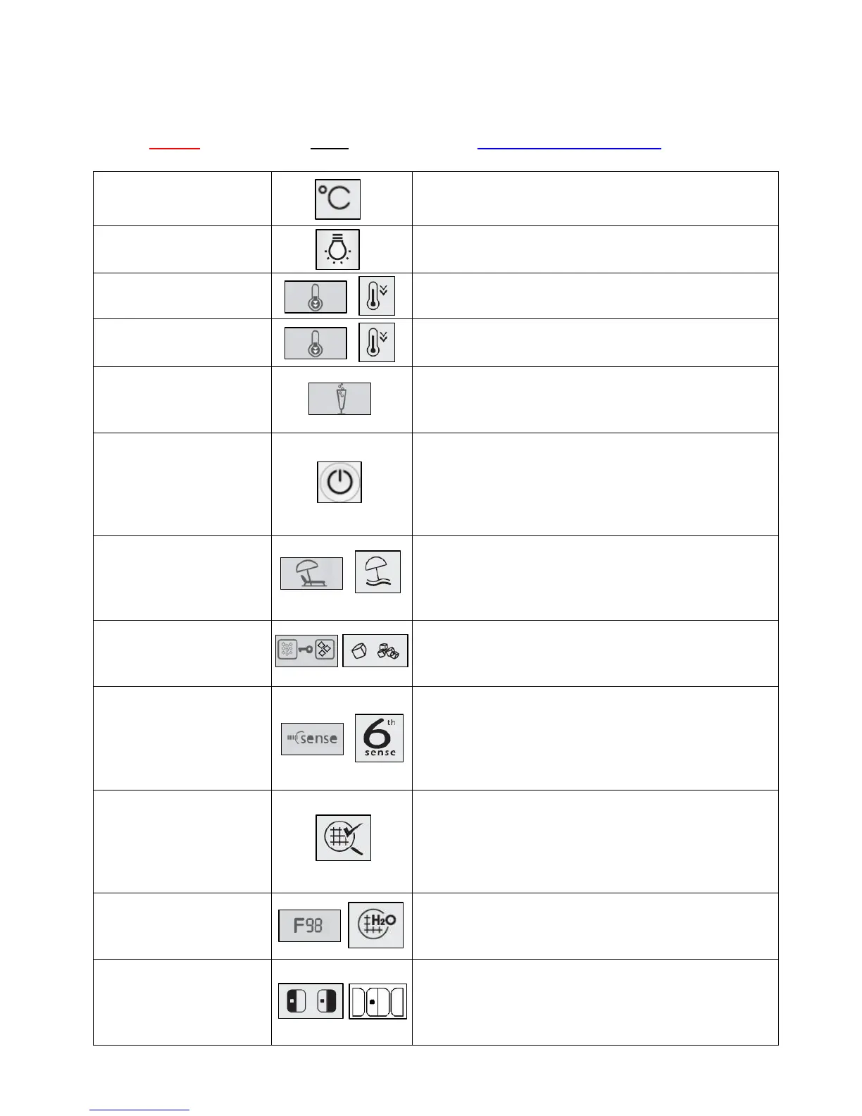 Water filter indicator This symbol indicates the states of the water filter.