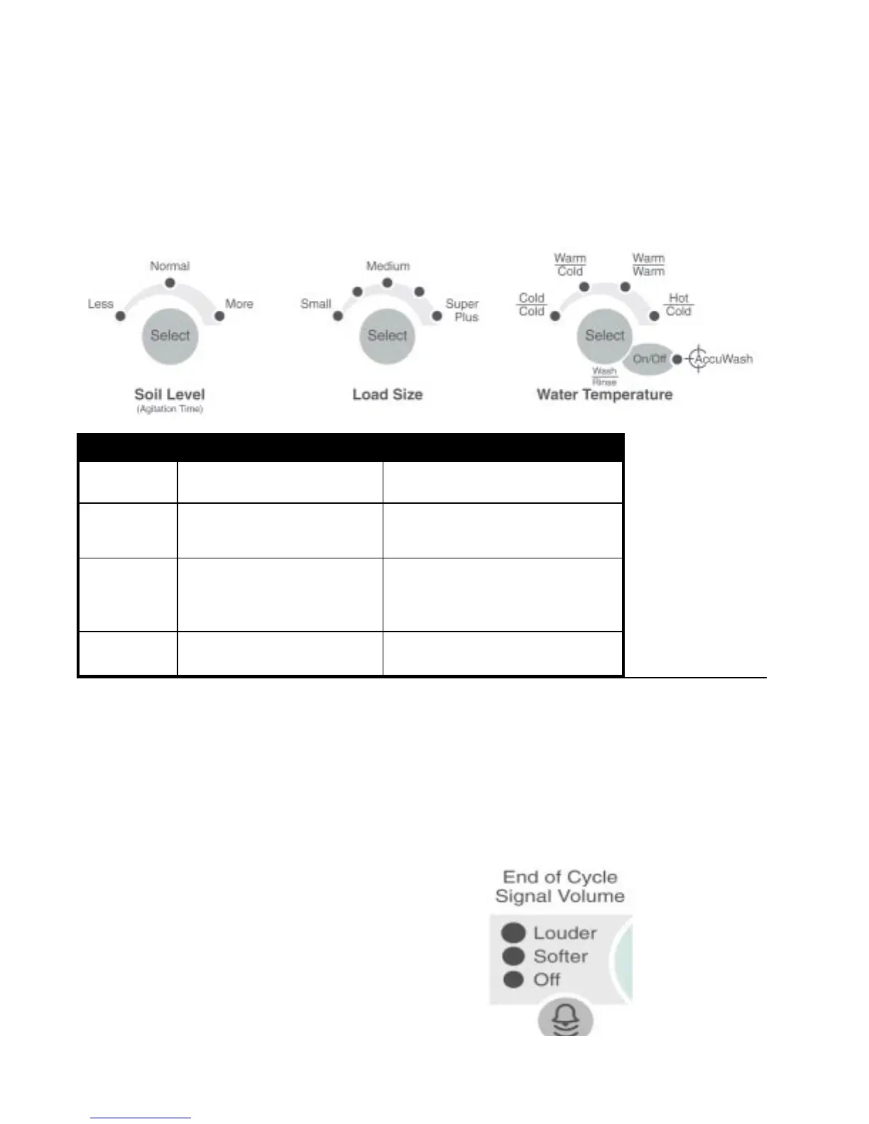 Up to five (5) different water levels can be selected ranging from SMALL LOAD to LARGE LOAD. In