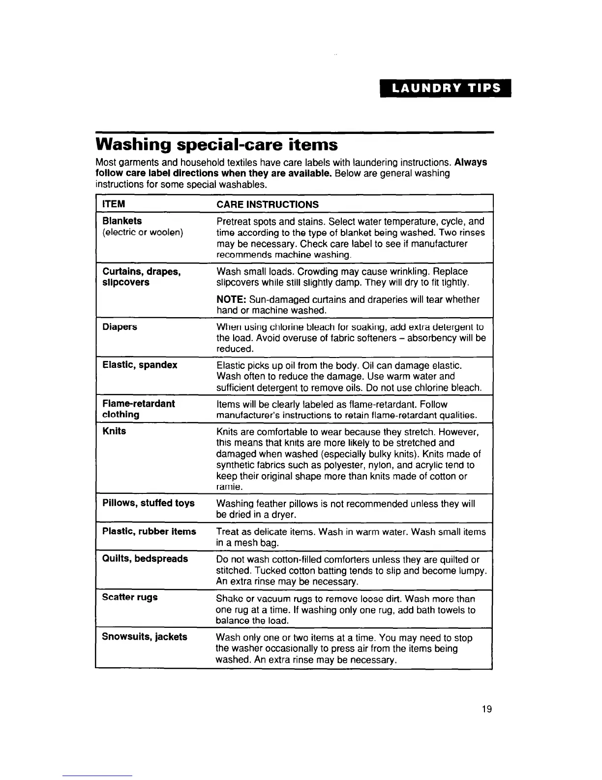 instructions for some special washables.