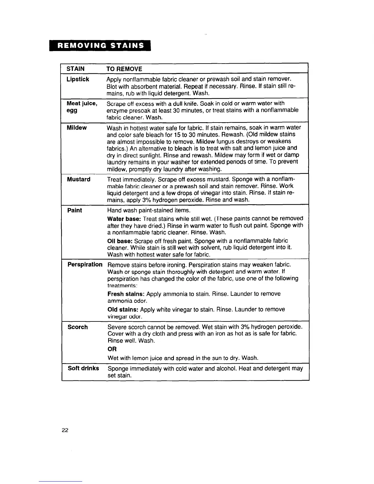 enzyme presoak at least 30 minutes, or treat stains with a nonflammable