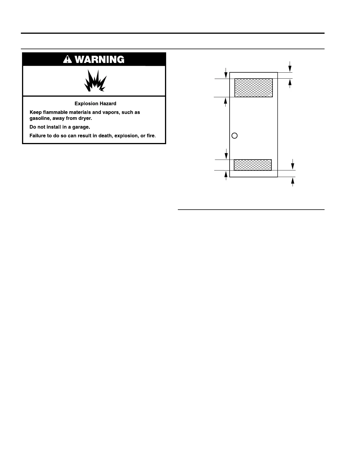 ■ Additional spacing of 1" (25 mm) on all sides of the dryer is
