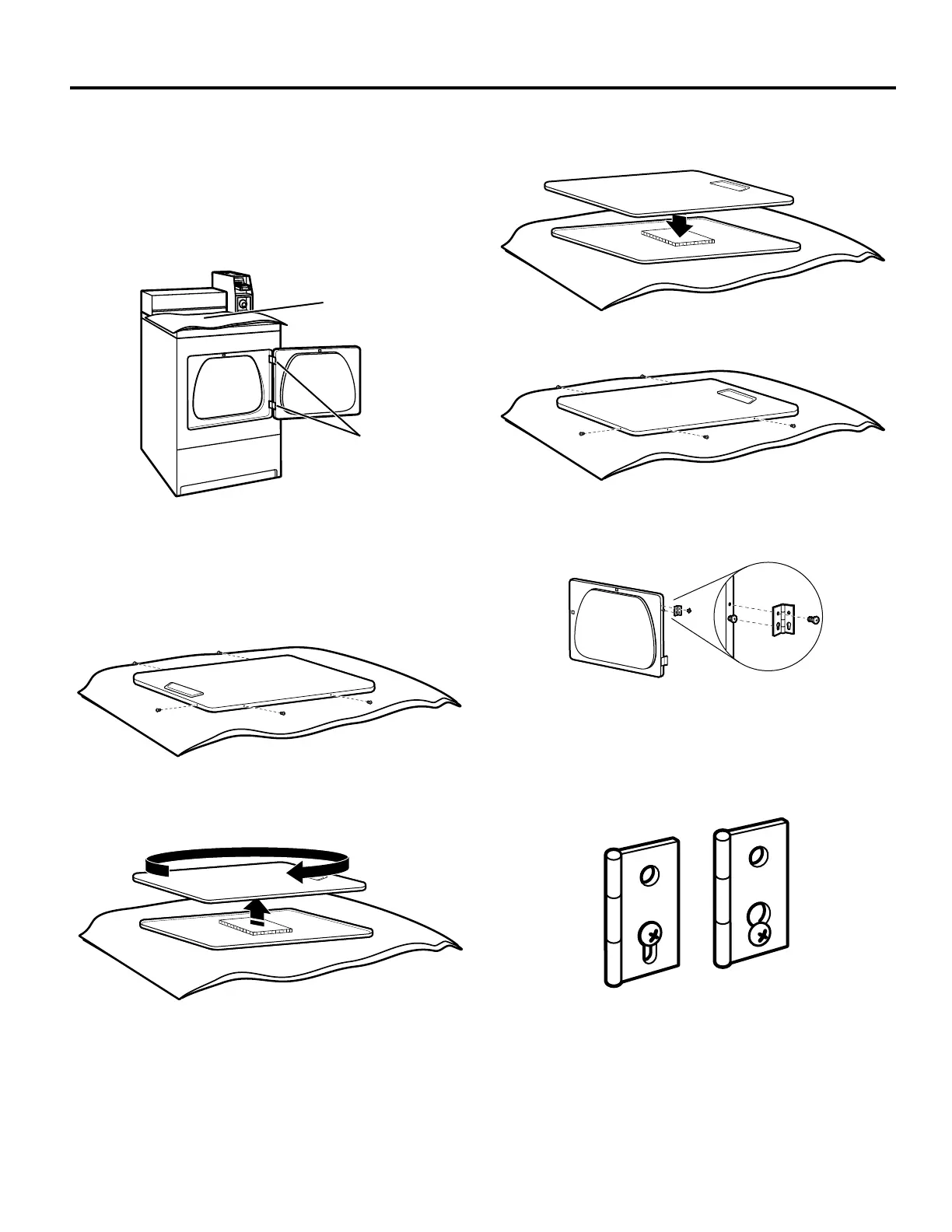 9. Attach door hinges to dryer door so that larger hole is at the