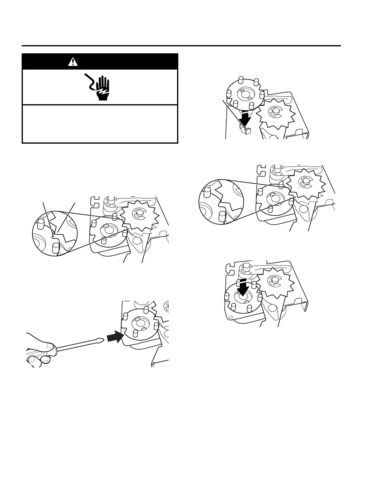 6. Turn cam until V-shaped notch lines up with ratchet tooth.