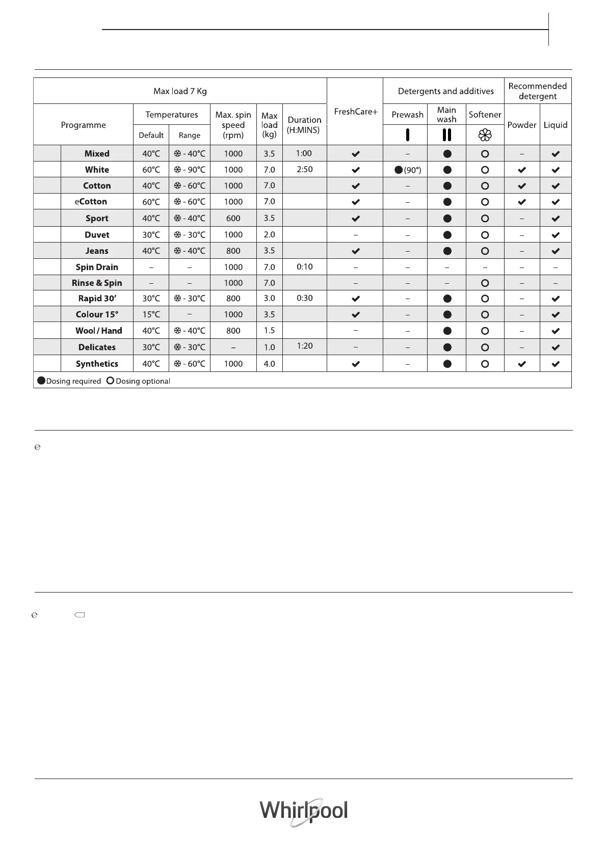 Long wash cycle for cottons: set wash cycle Cotton with a