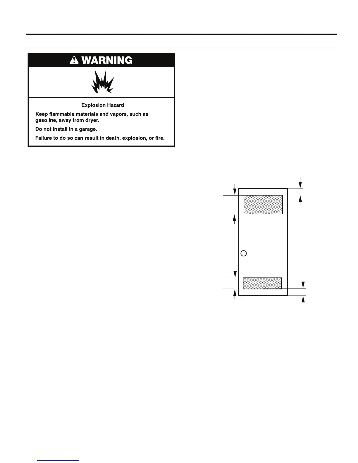 Q Additional spacing of 1" (25 mm) on all sides of the dryer is