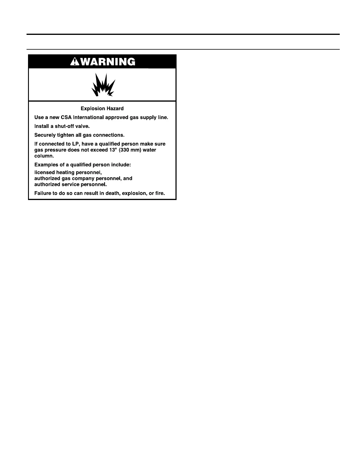 Code ANSI Z223.1/NFPA 54 or CAN/CSA B149.