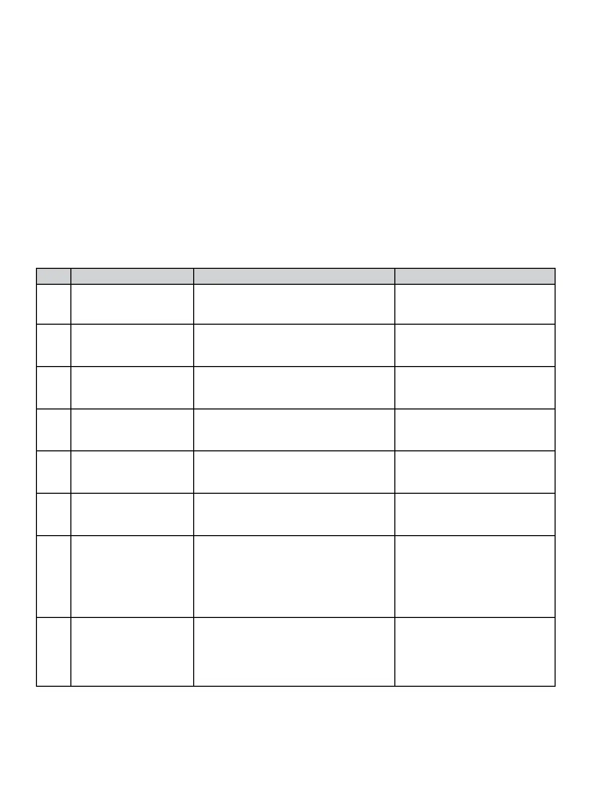 described in the table below. Once the action is completed, the cycle will advance to the next