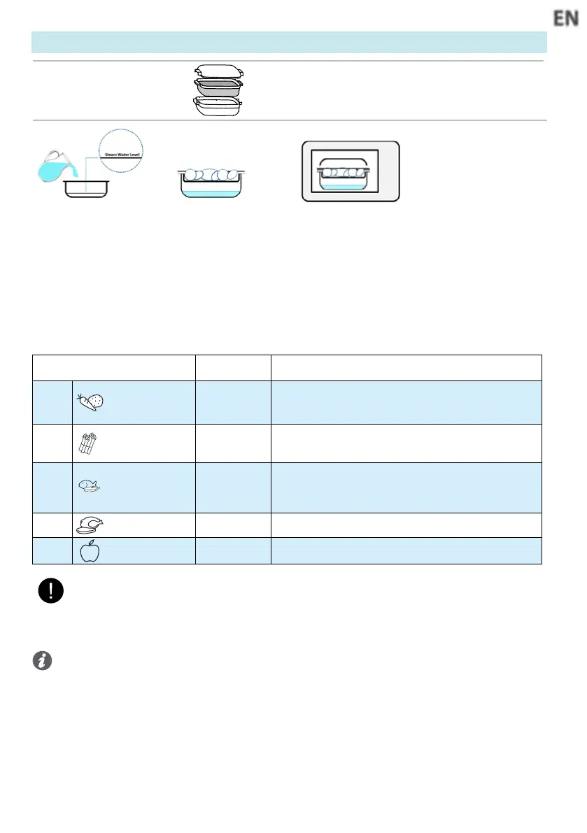 Fruit 150g - 500g Add 100ml water at the steamer bottom.
