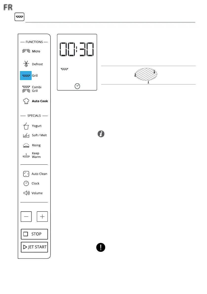 Appuyez sur le bouton Grill (Gril),l'acha-