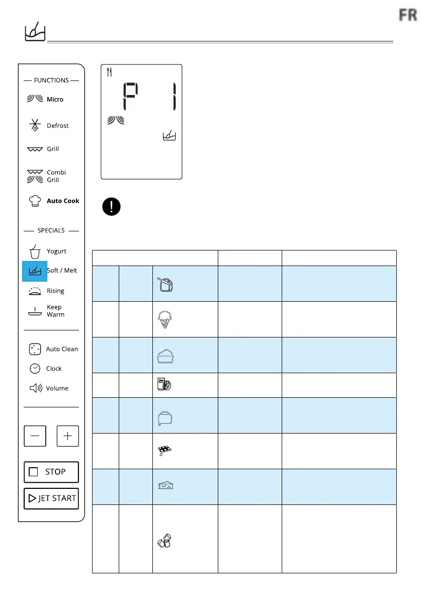 (Ramollir/Faire fondre) ou appuyez sur le bou-