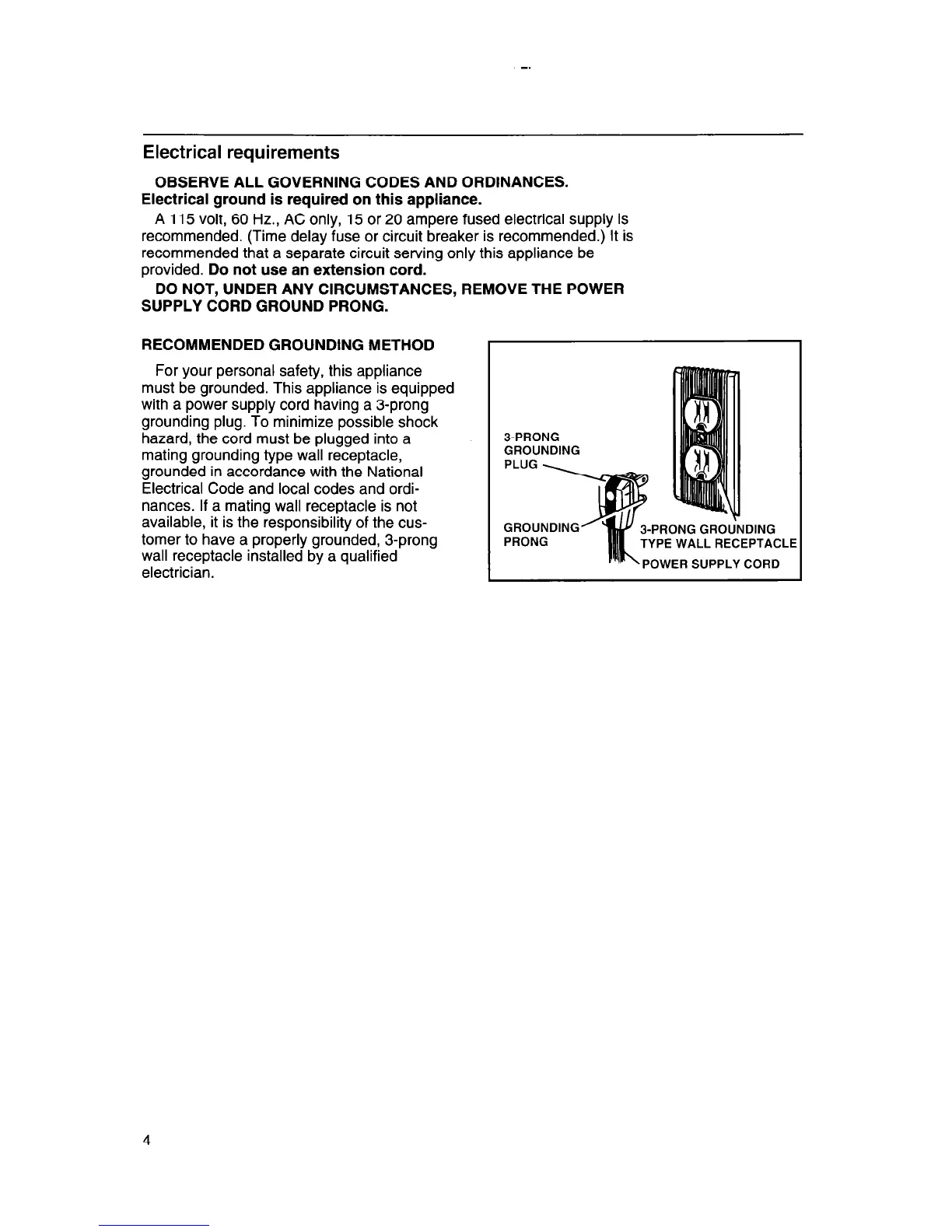 A 115 volt, 60 Hz., AC only, 15 or 20 ampere fused electrical supply is