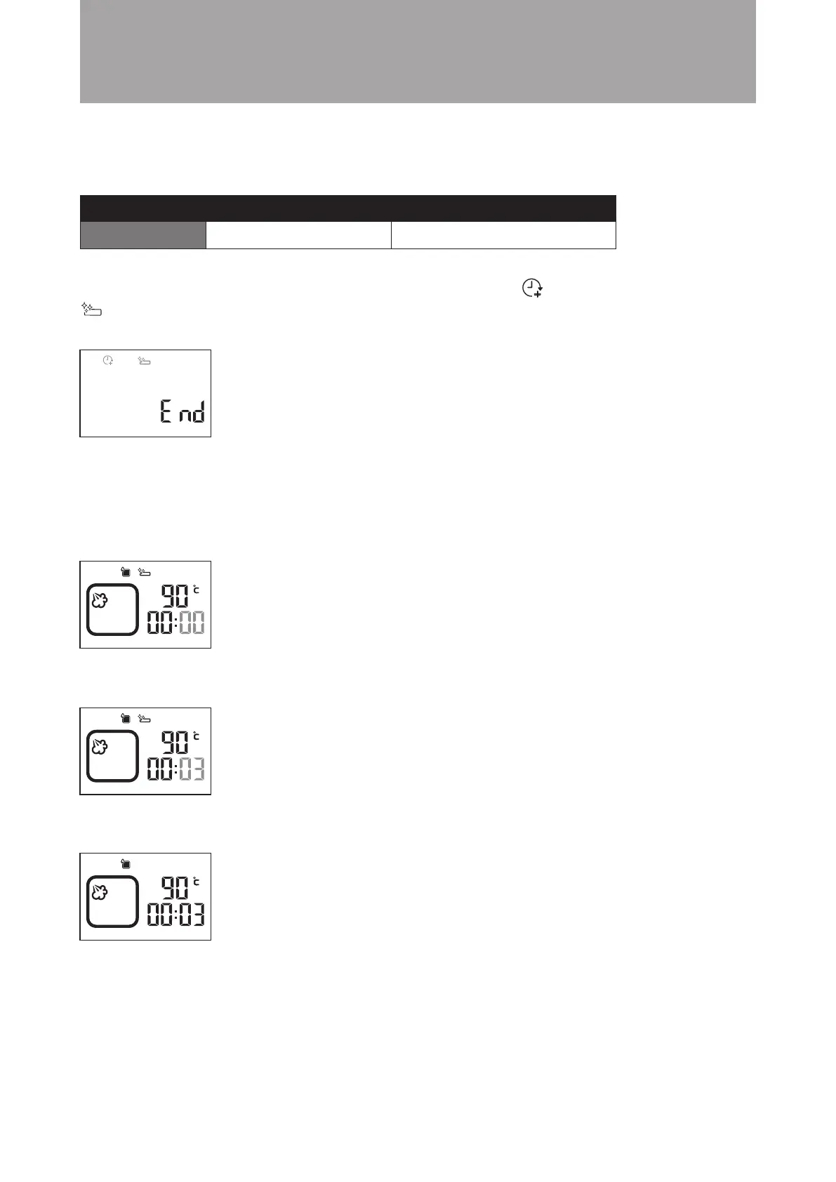 烹調結束後,顯示屏會顯示“End”並發出聲效提示。同時顯示屏上 結束後追加時間圖示會閃爍。
