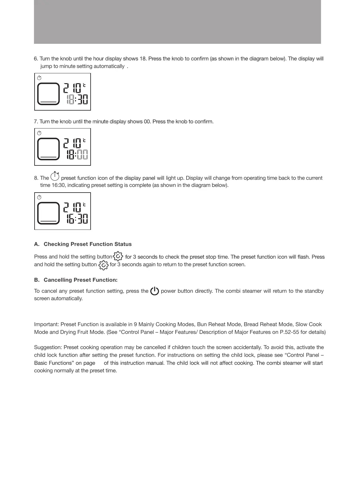 Important: Preset Function is available in 9 Mainly Cooking Modes, Bun Reheat Mode, Bread Reheat Mode, Slow Cook