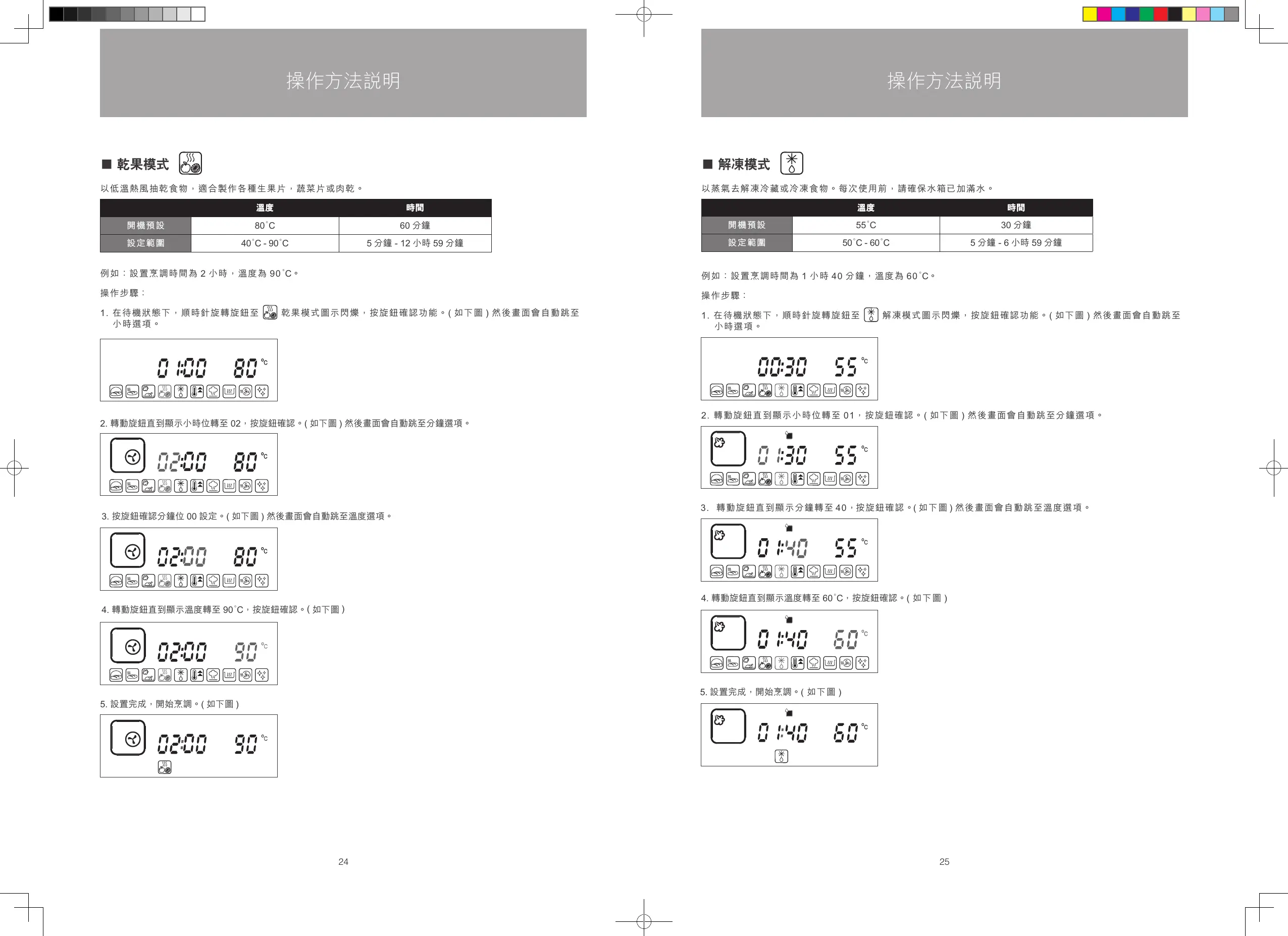 例如:設置烹調時間為 2 小時,溫度為 90°C 。