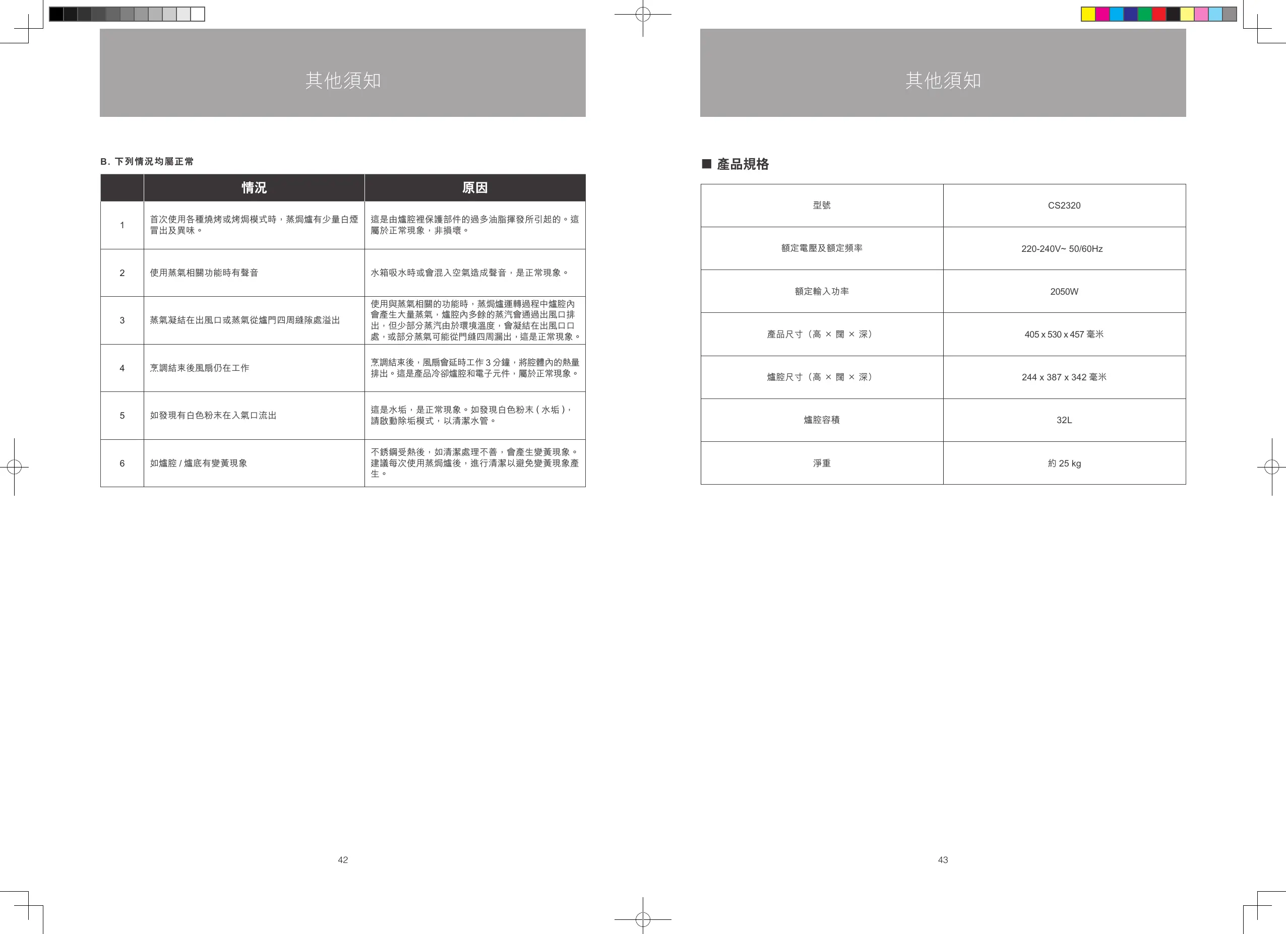 首次使用各種燒烤或烤焗模式時,蒸焗爐有少量白煙