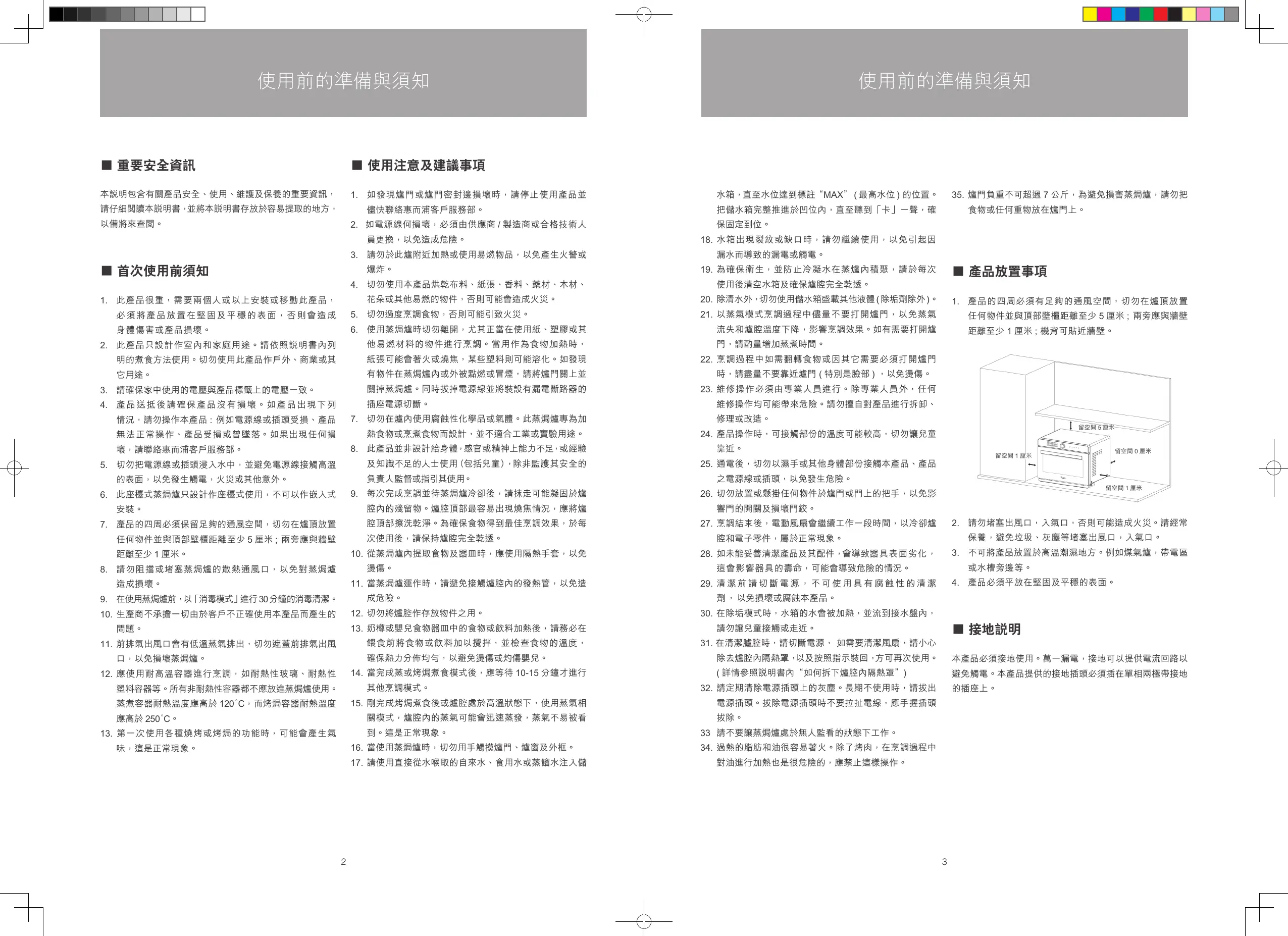 1. 產品的四周必須有足夠的通風空間,切勿在爐頂放置