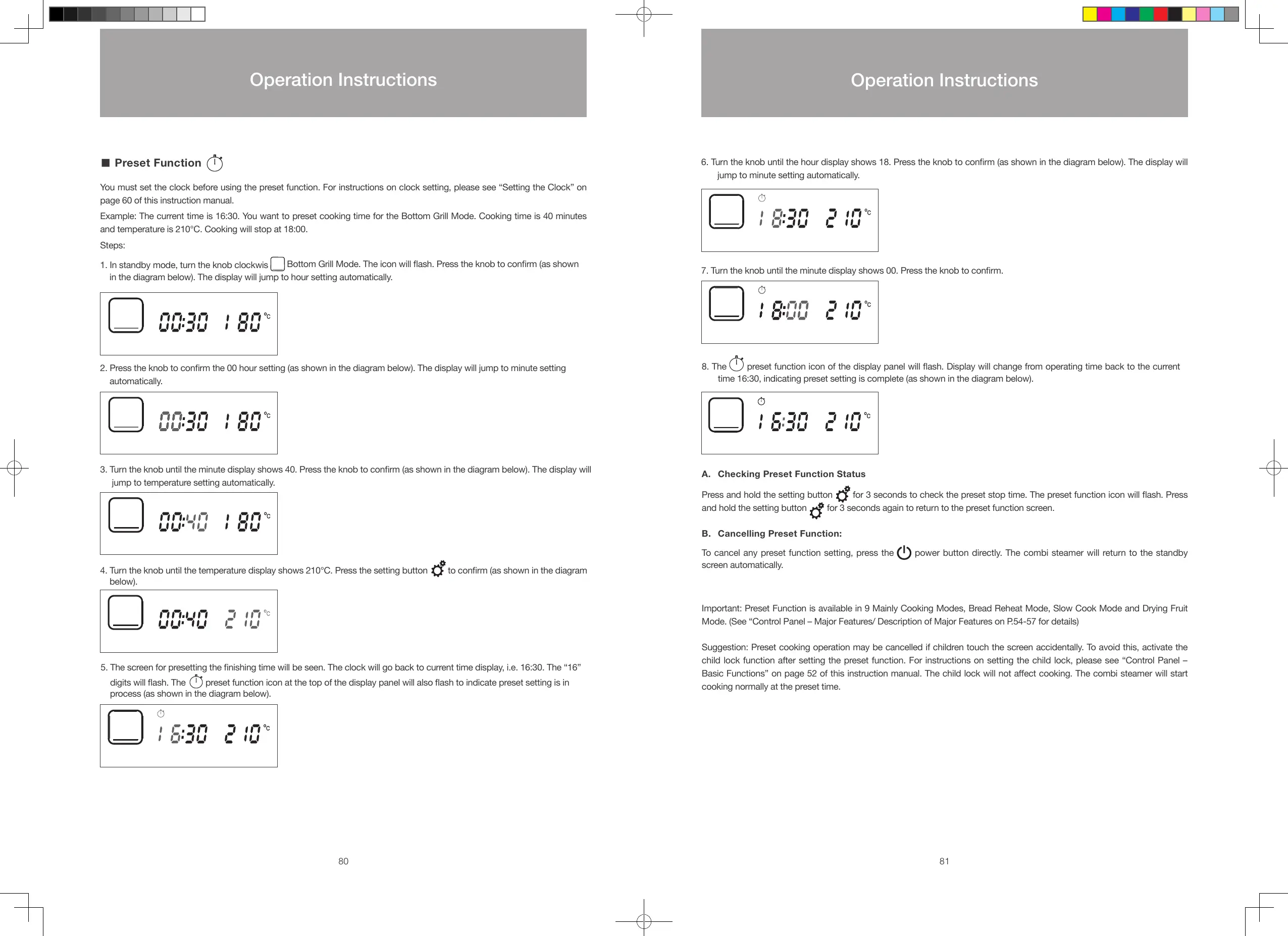 for 3 seconds to check the preset stop time. The preset function icon will ash. Press