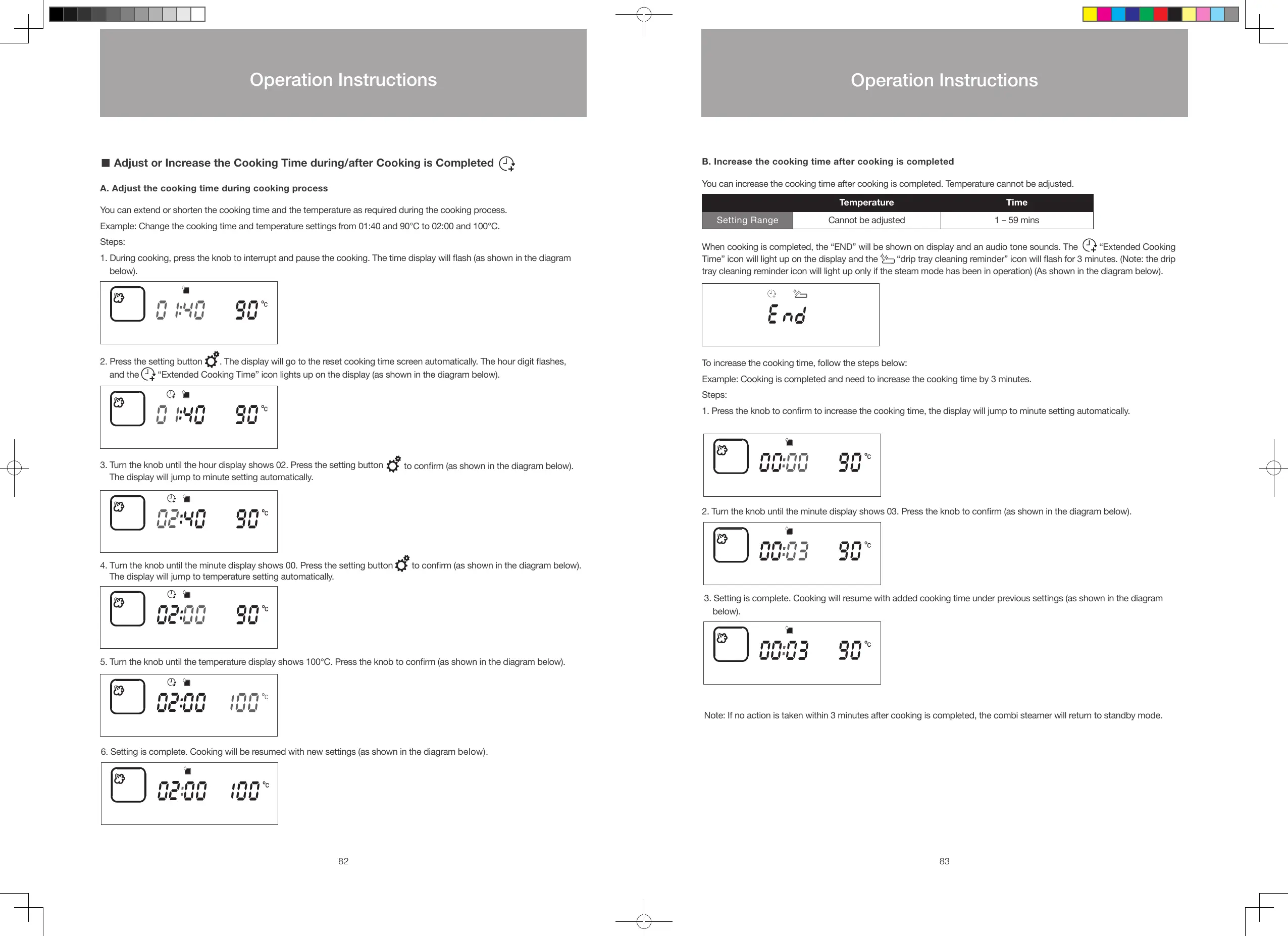 Example: Cooking is completed and need to increase the cooking time by 3 minutes.