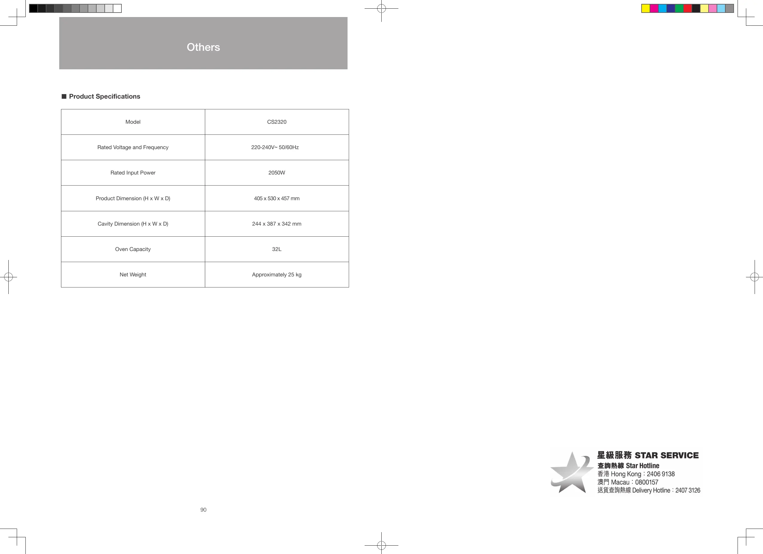 Whirlpool CS2320 - Product Specifications
