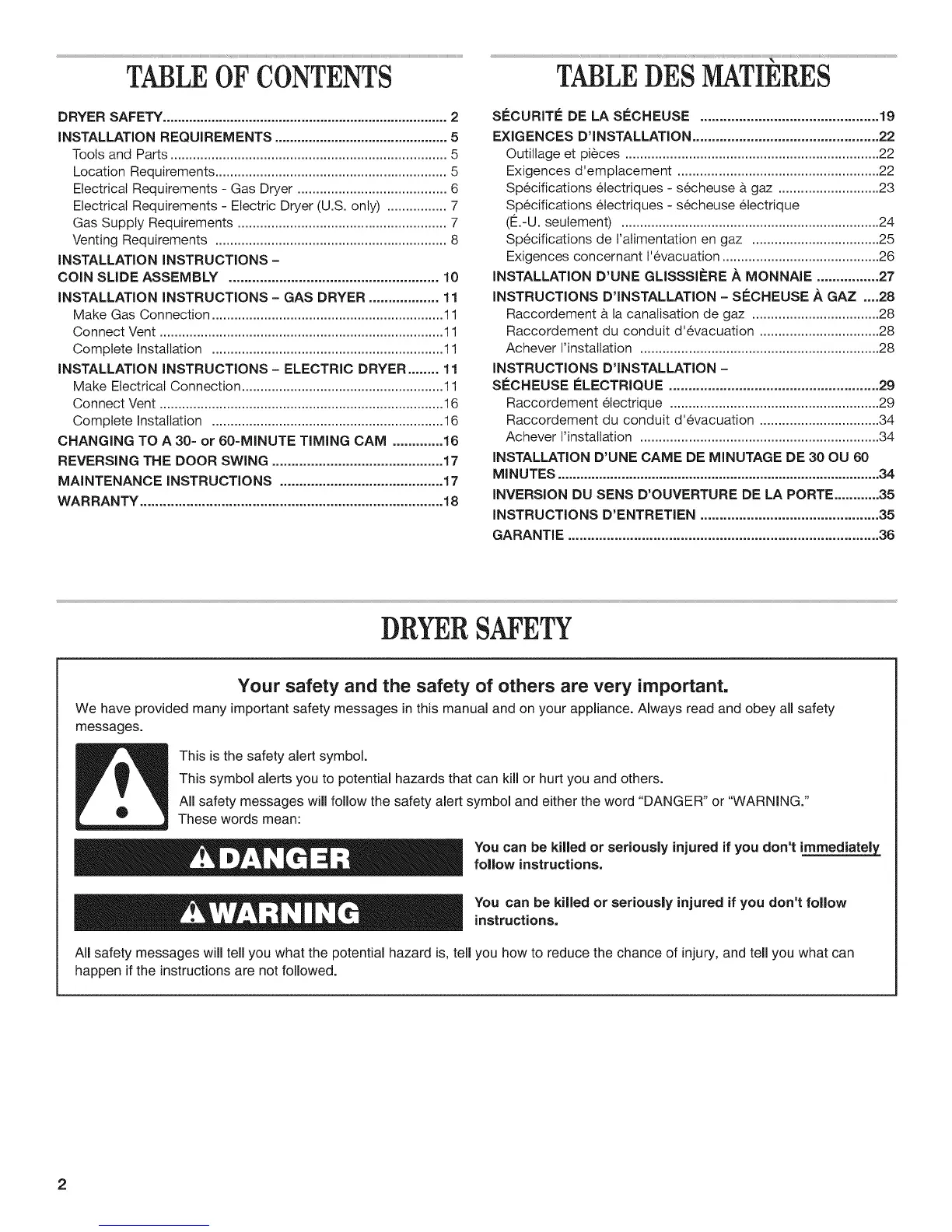 Electrical Requirements - Electric Dryer (U.S. only) ................ 7