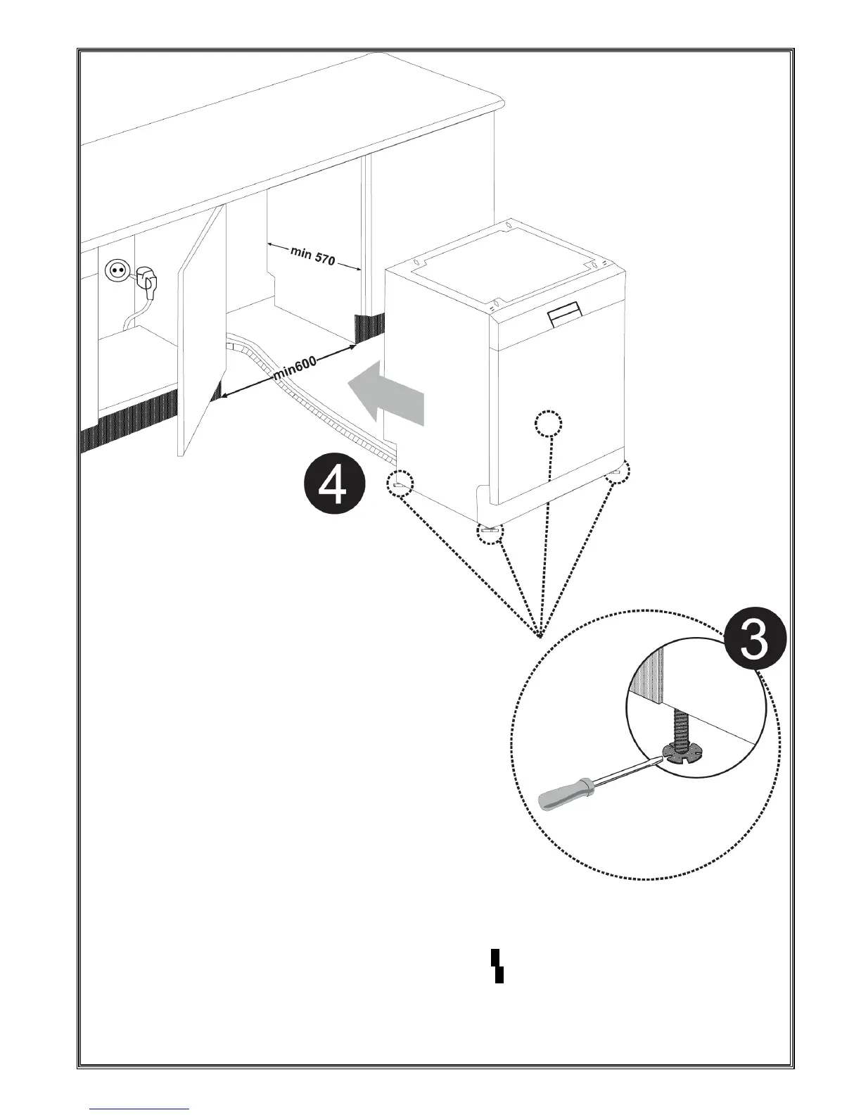 r removal of worktop, the machine should be placed in such a closed place of which