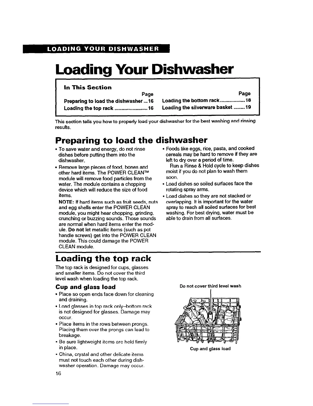 This section tells you how to properly load your dishwasher for the best washing and rinsing
