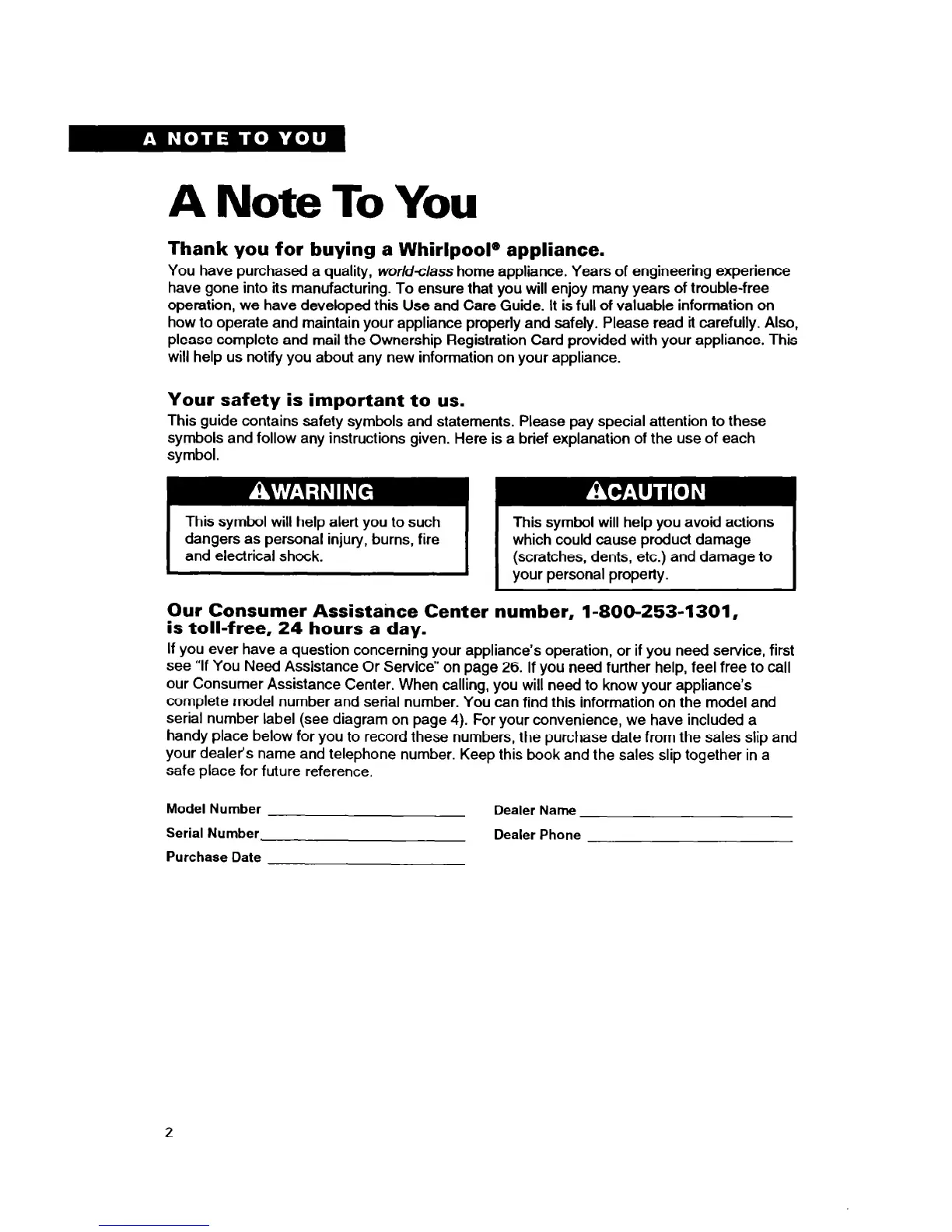 operation, we have developed this Use and Care Guide. It is full of valuable information on
