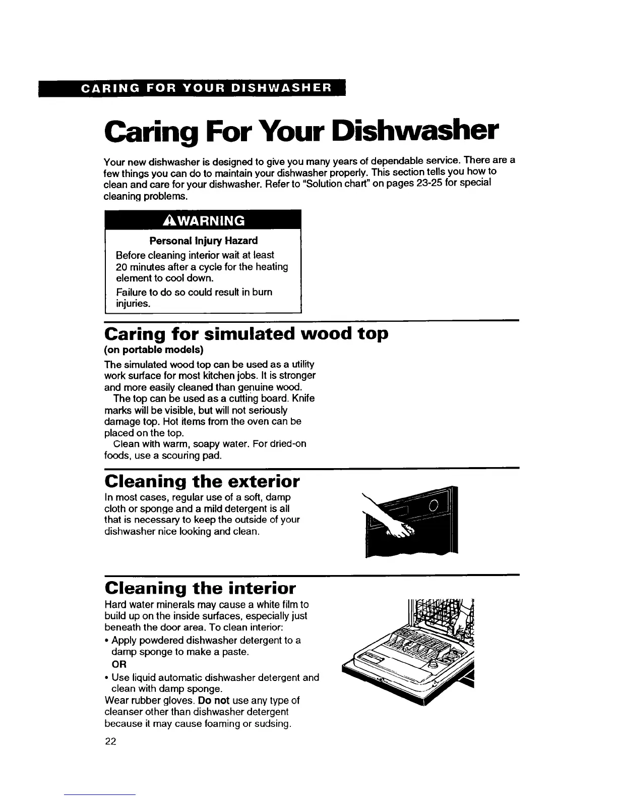 clean and care for your dishwasher. Refer to “Solution chart” on pages 23-25 for special