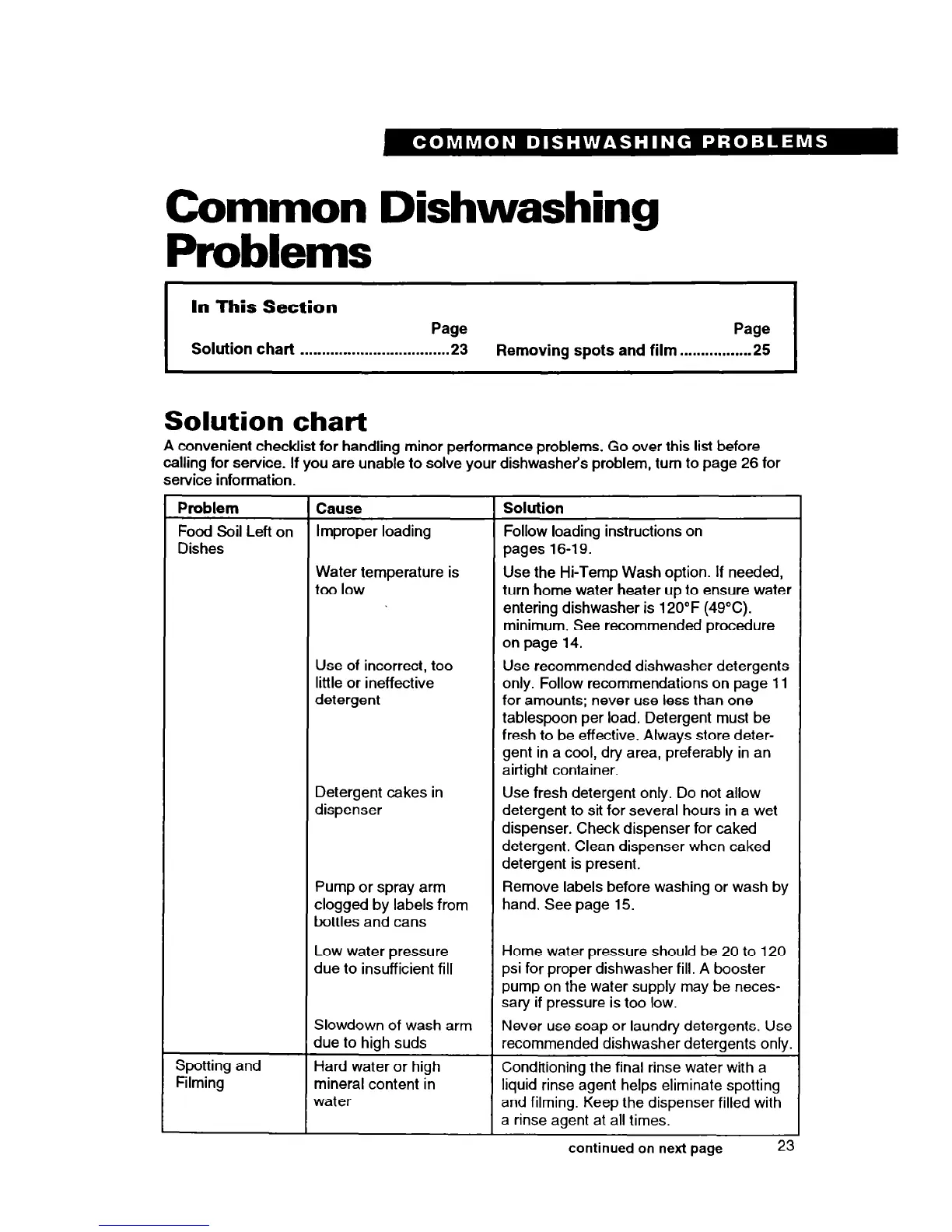 calling for service. If you are unable to solve your dishwasher’s problem, turn to page 26 for