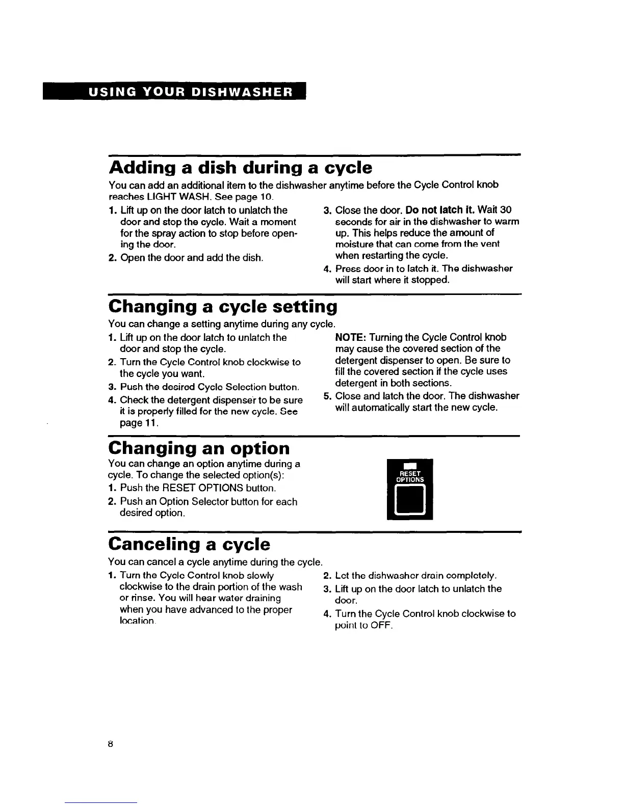 1. Push the RESET OPTIONS button.