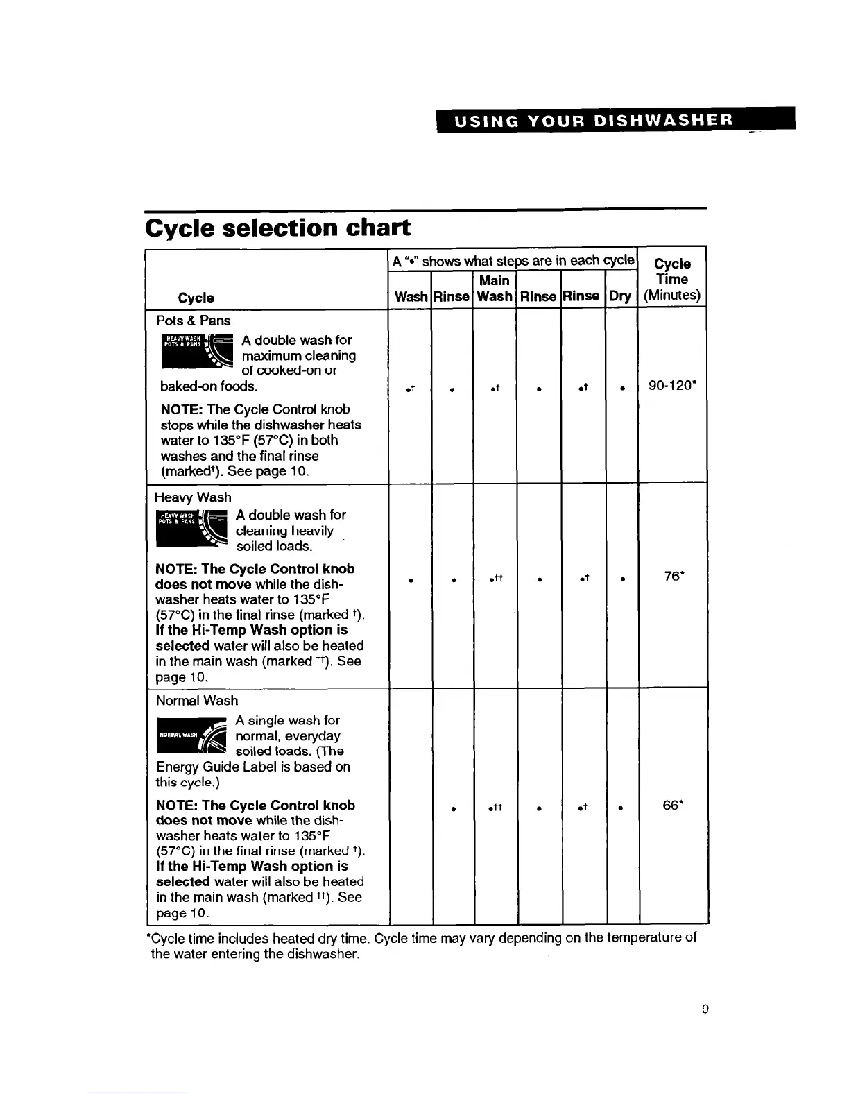 ‘Cycle time includes heated dry time. Cycle time may vary depending on the temperature of