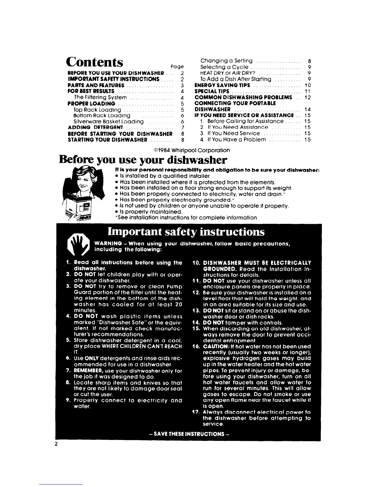 BEFORE YOU USE YOUR DISHWASHER 2 HEAT DRYor AIR DRY? 9