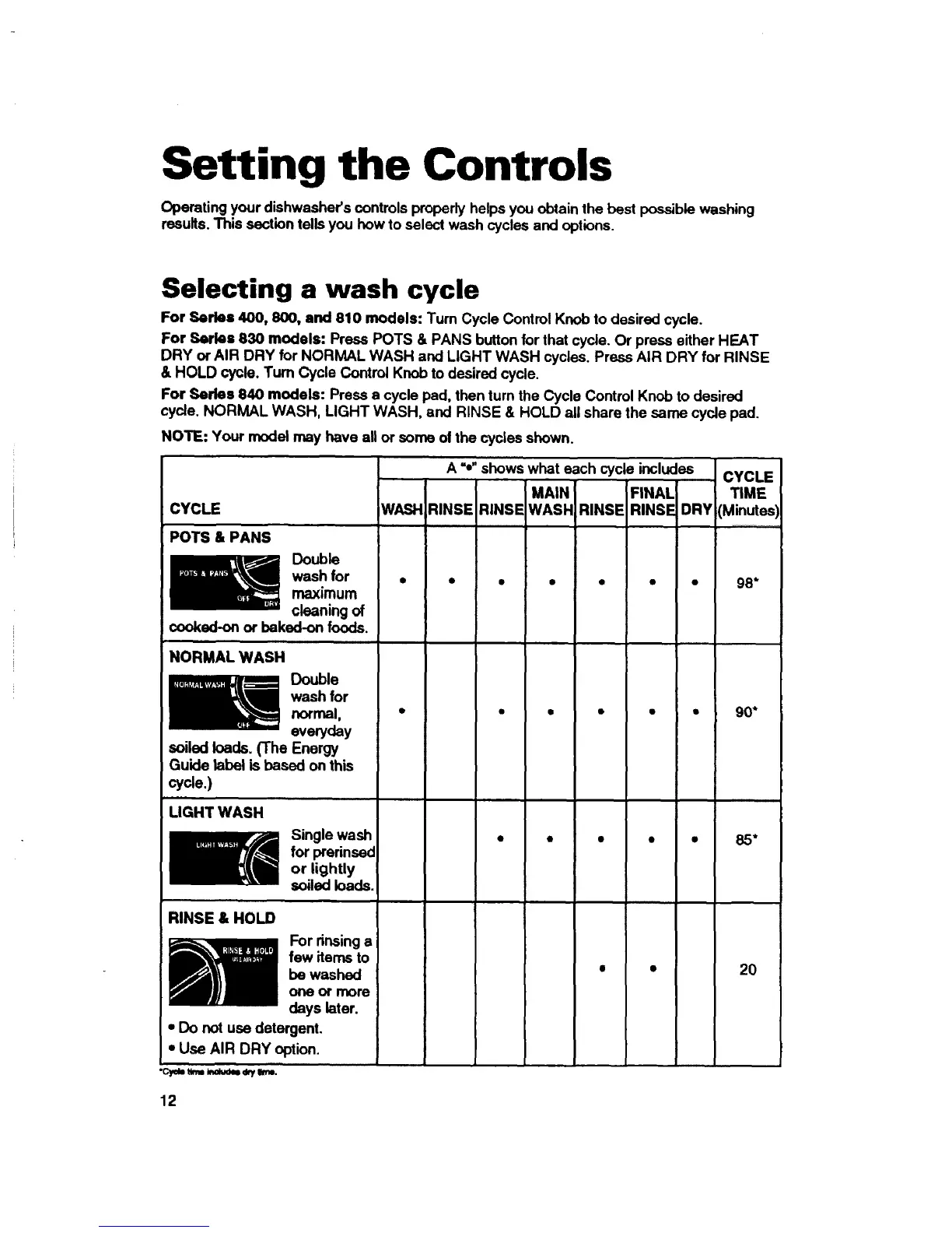 Operating your dishwasher's controls properly helps you obtain the best possible washing