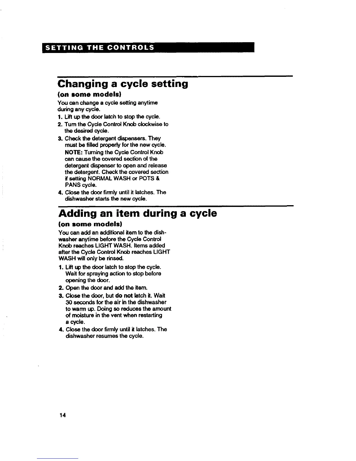 after the Cycle Control Knob reaches LIGHT