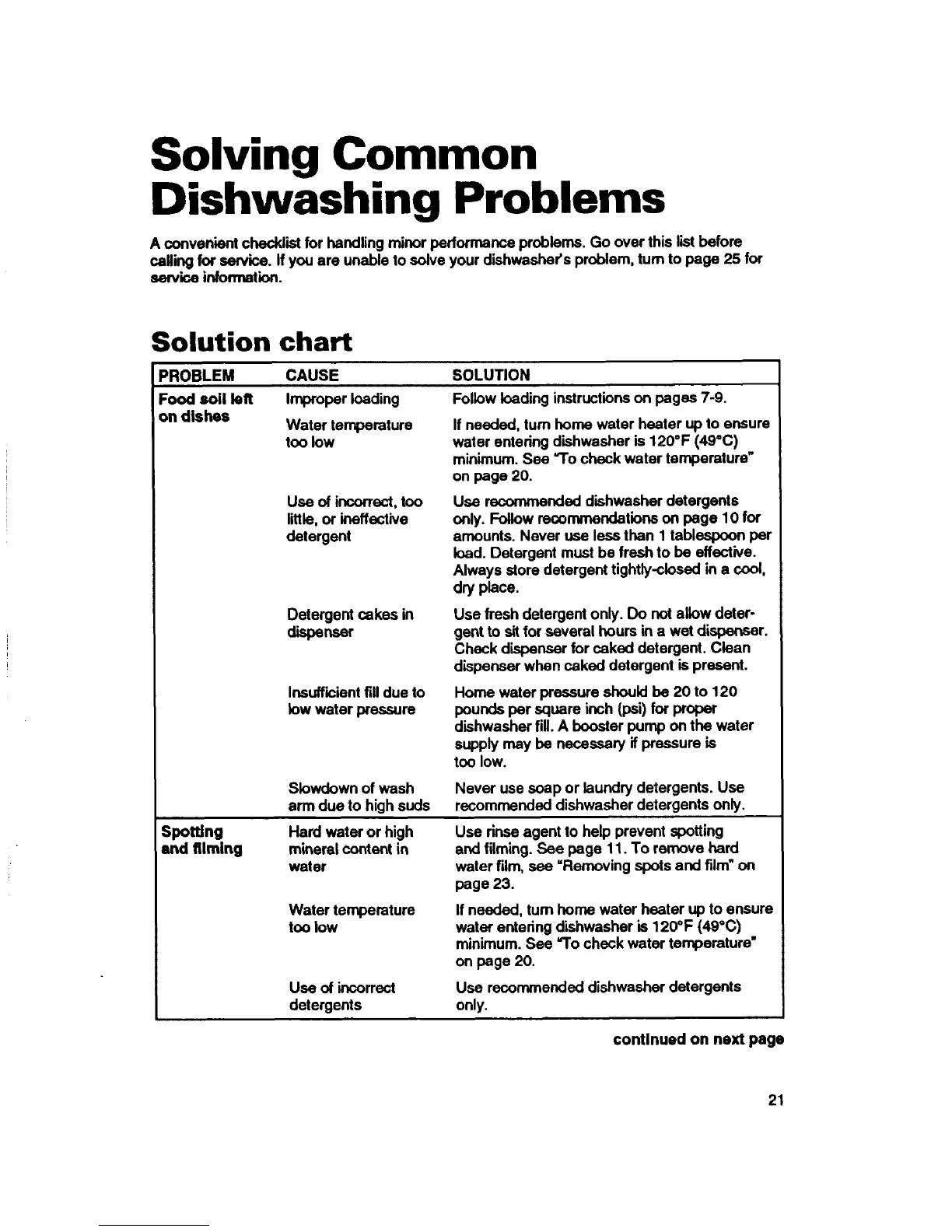calling for service, if you are unable to solve your dishwasher's problem, turn to page 25 for