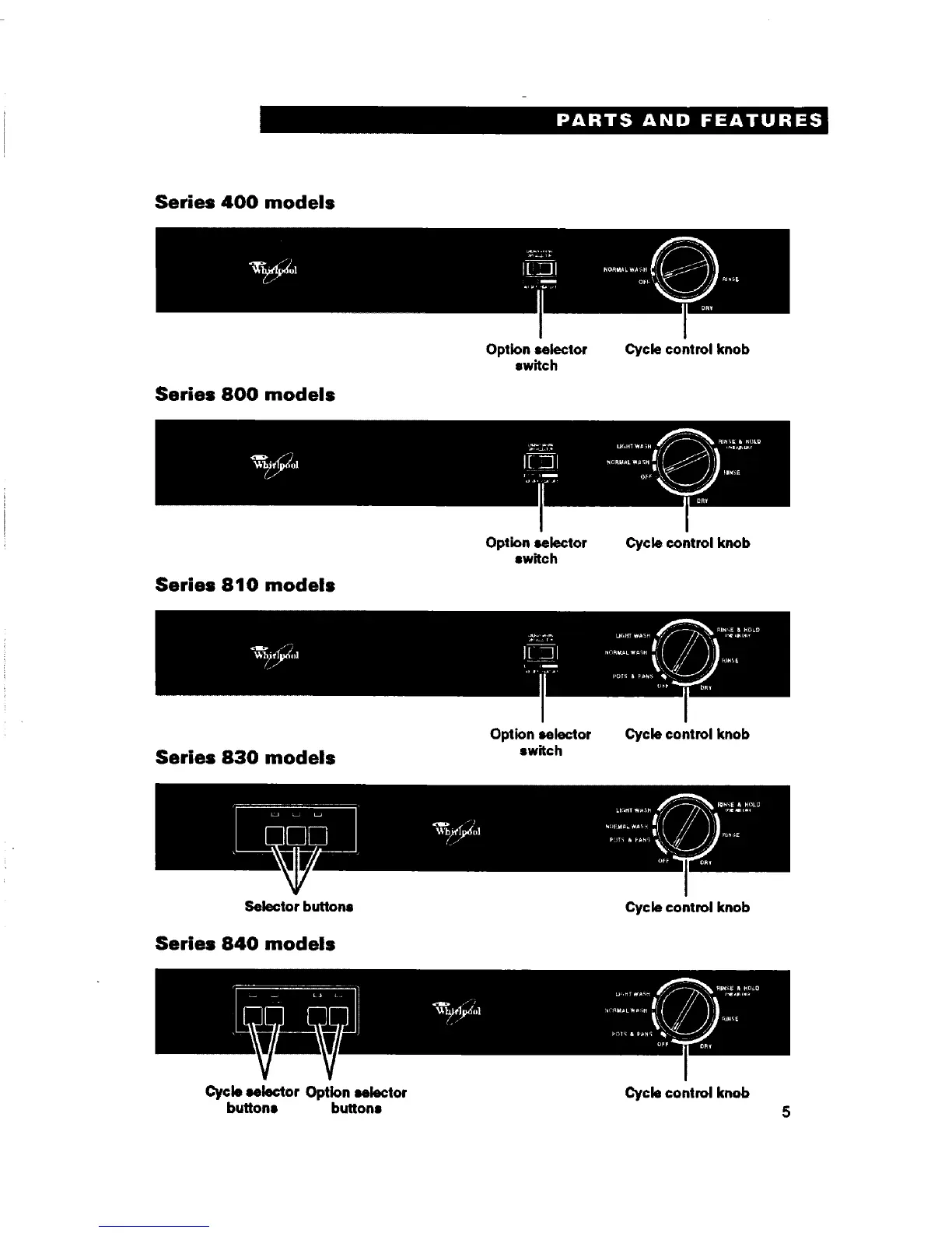 Cycle selector Option selector Cycle control knob