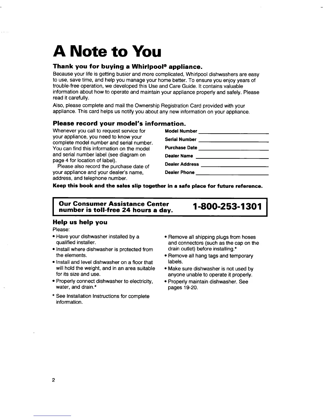 trouble-free operation, we developed this Use and Care Guide. It contains valuable