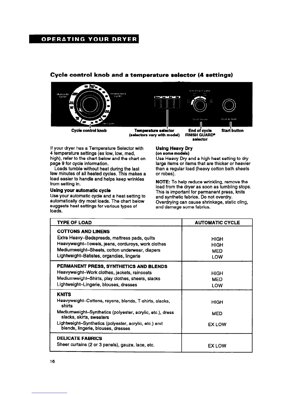 If your dryer has a Temperature Selector with