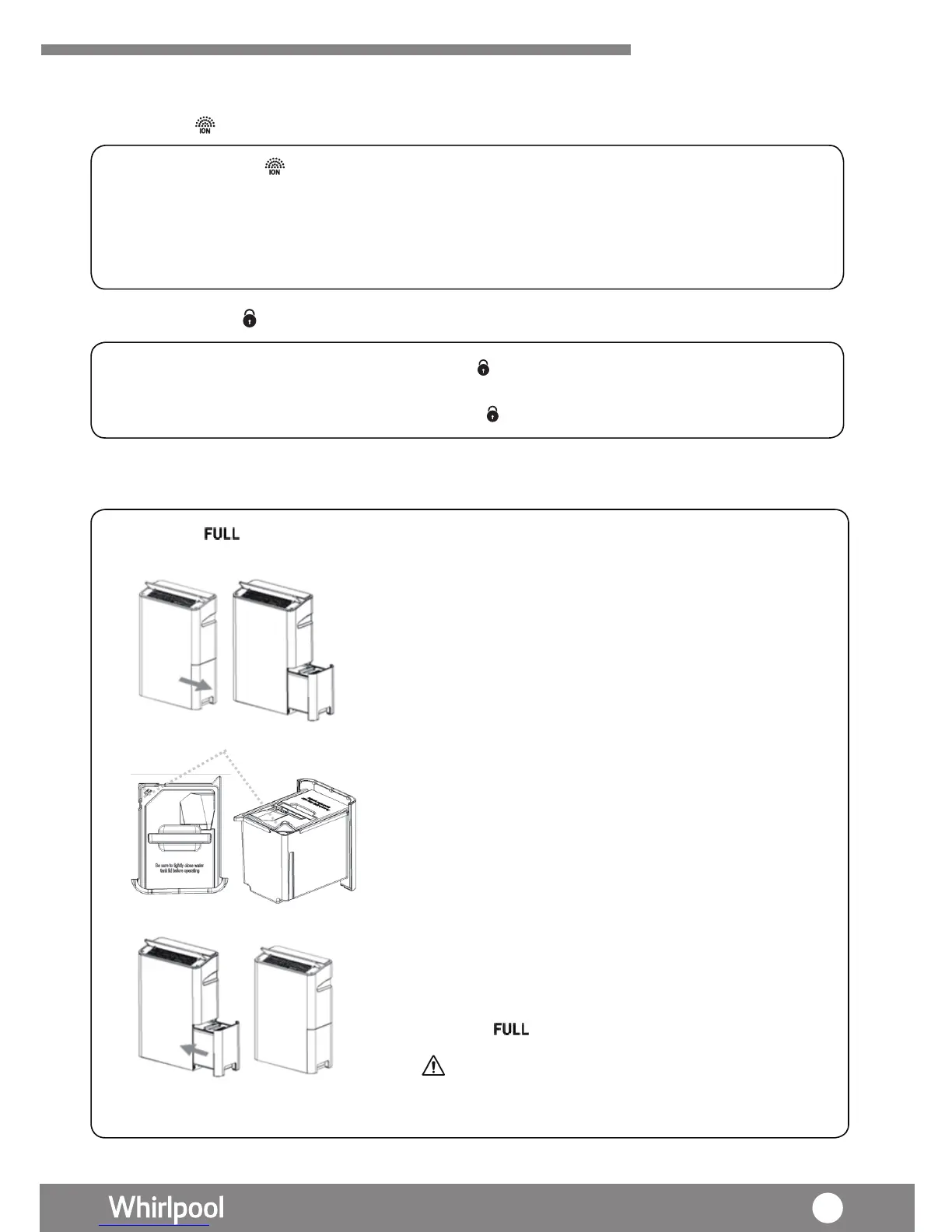 ” indicator lights up, it means the water tank is full (around 4.5L) , The unit will