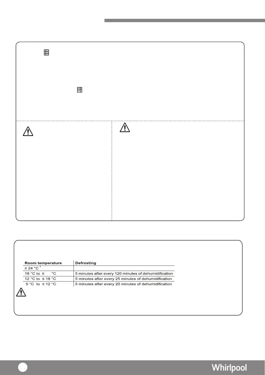 “ ” indicator will light up and dehumidifier will start defrost cycle.