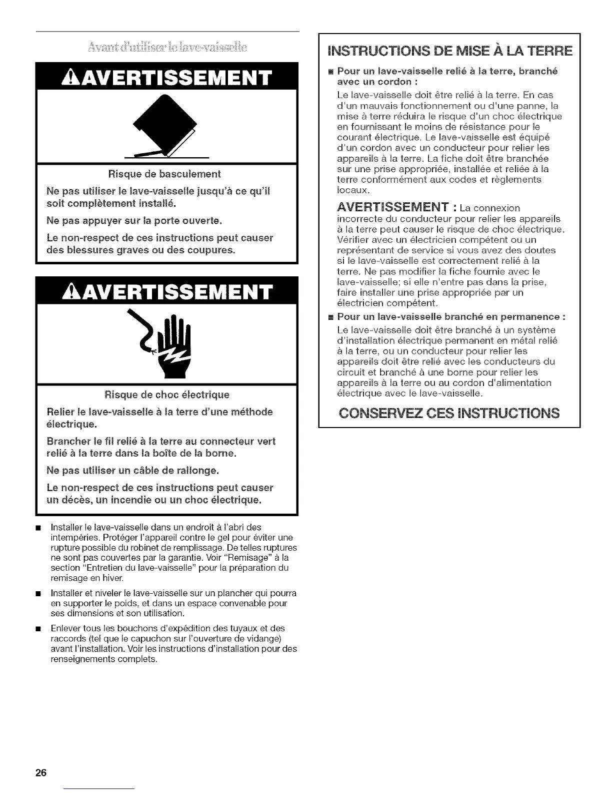 Le lave-vaisselle doit _tre reli& a la terre. En cas