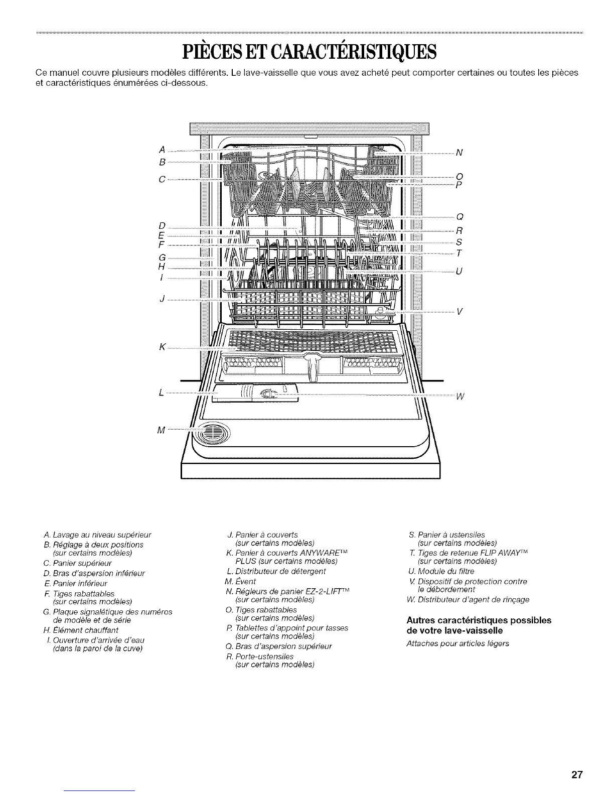 Ce manuel couvre plusieurs modeles differents. Le lave-vaisselle que vous avez achete peut comporter certaines ou toutes les pieces