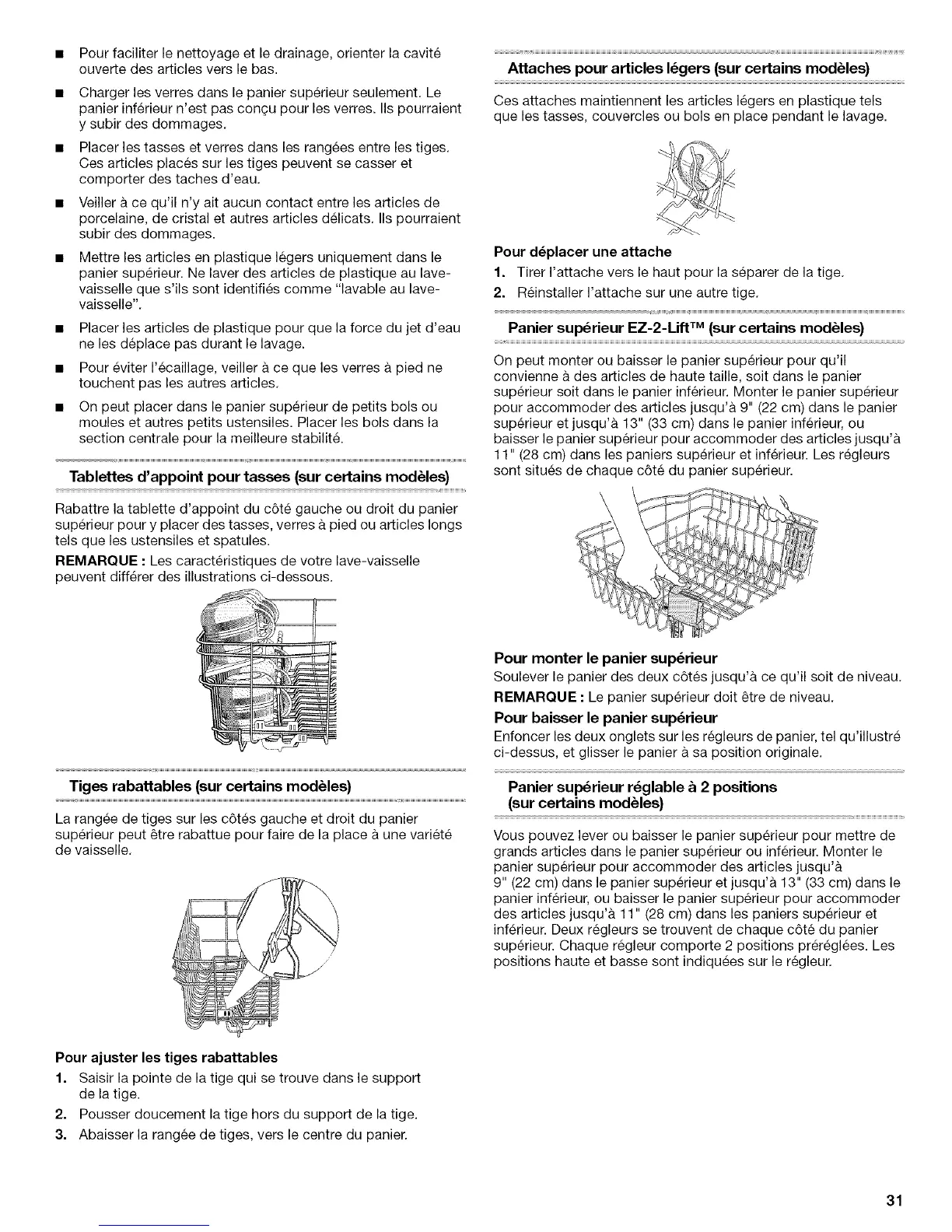 REMARQUE : Le panier superieur doit _tre de niveau.